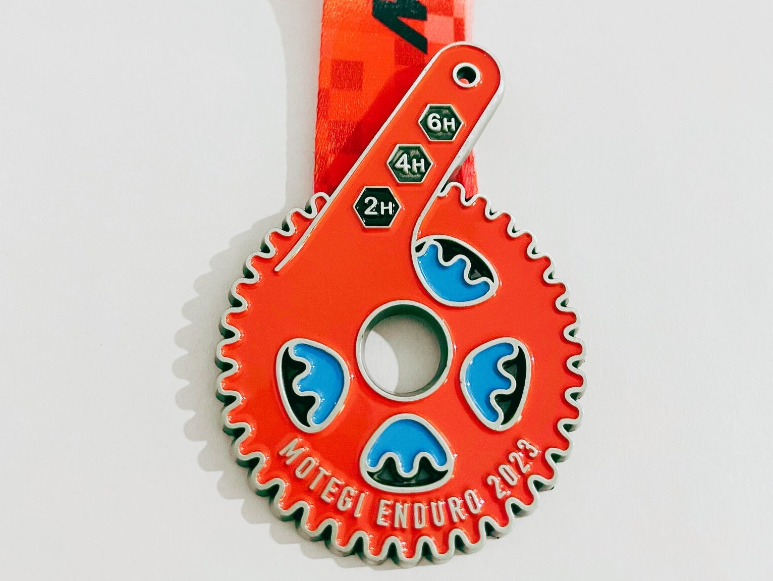 20周年大会のテーマは“ENJOY YOUR CHALLENGE“。挑戦することの楽しさ、サイクリングの楽しさを参加者の皆様にシェアいただくために「目指せエンデューロ完走!」企画を実施します。もてぎエンデューロは耐久レースですが、大会独自の規定周回を設定し、規定周回数を走行することで完走とみなします。完走された方にはオリジナル完走メダルを贈呈します(上記の画像はイメージです)。ソロ参加者だけでなくチーム参加者全員も対象となります。想定完走率は85%です。コロナ禍でしばらくサイクリングから離れてしまった方も、ぜひ、もてぎエンデューロ完走を目標に日々のトレーニングもお楽しみいただければと思います。