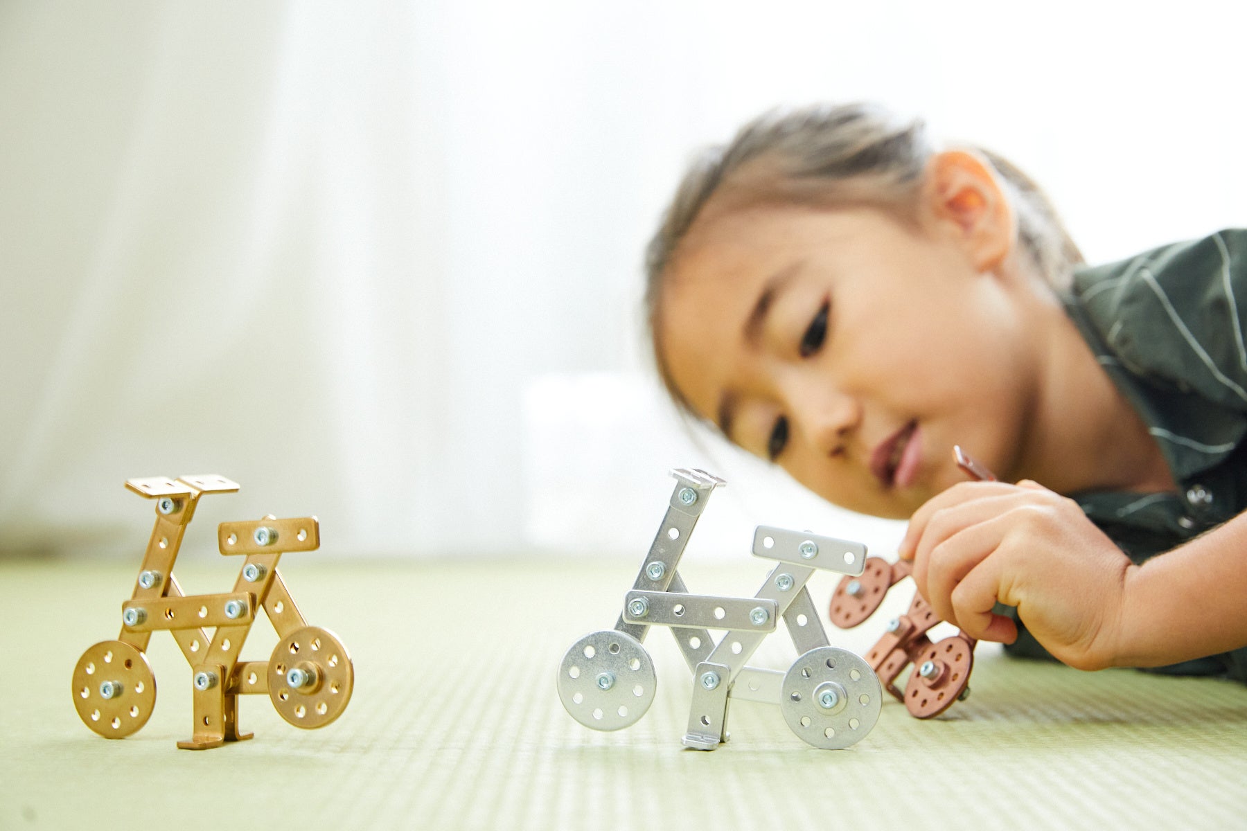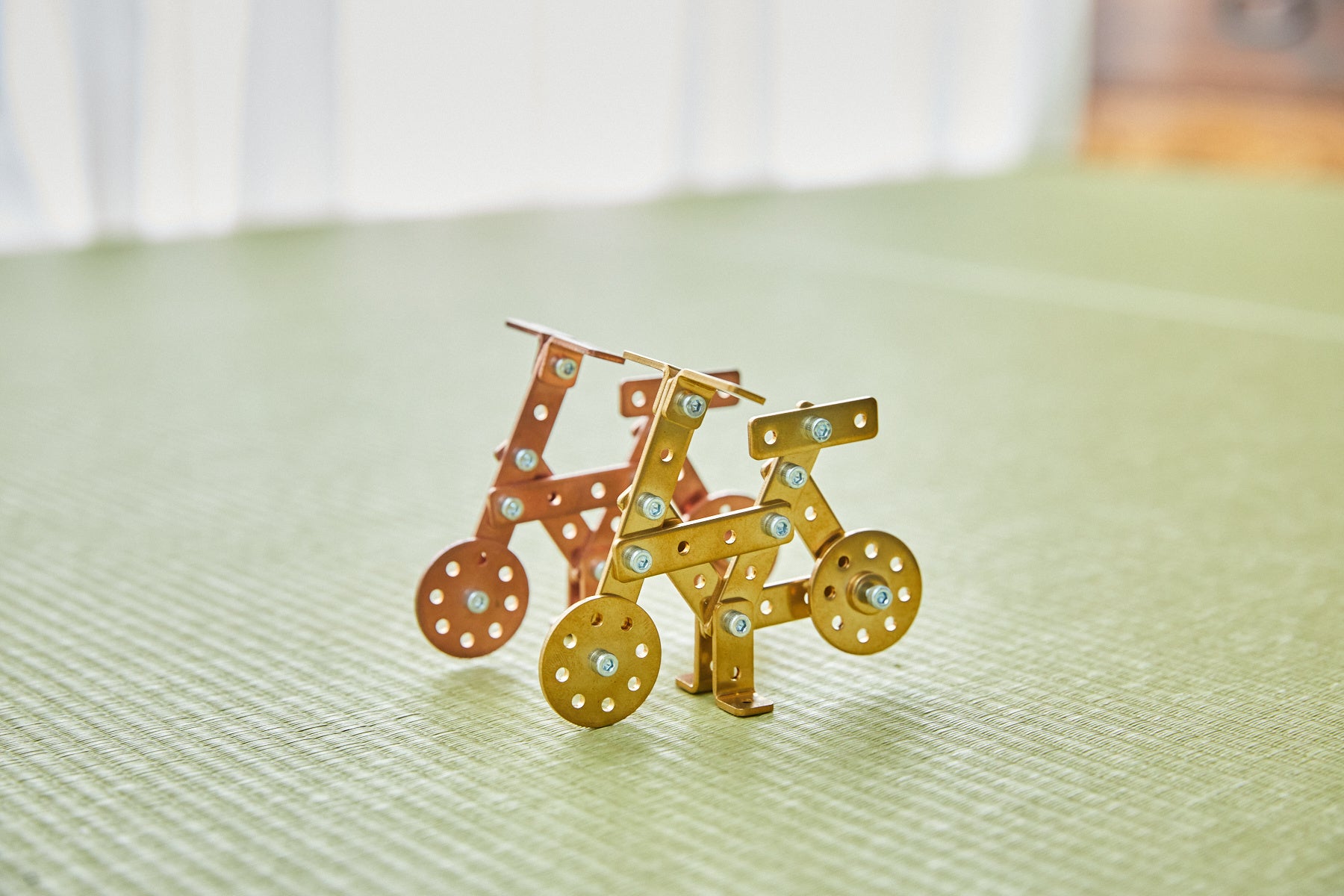 組み立て後はインテリアとしてもかわいい自転車のブロック。対象年齢は15歳以上ですが、保護者の方の責任のもと、小さなお子様と一緒に作ることが可能。年末年始のお家時間を楽しむアイテムとしてご利用できます。