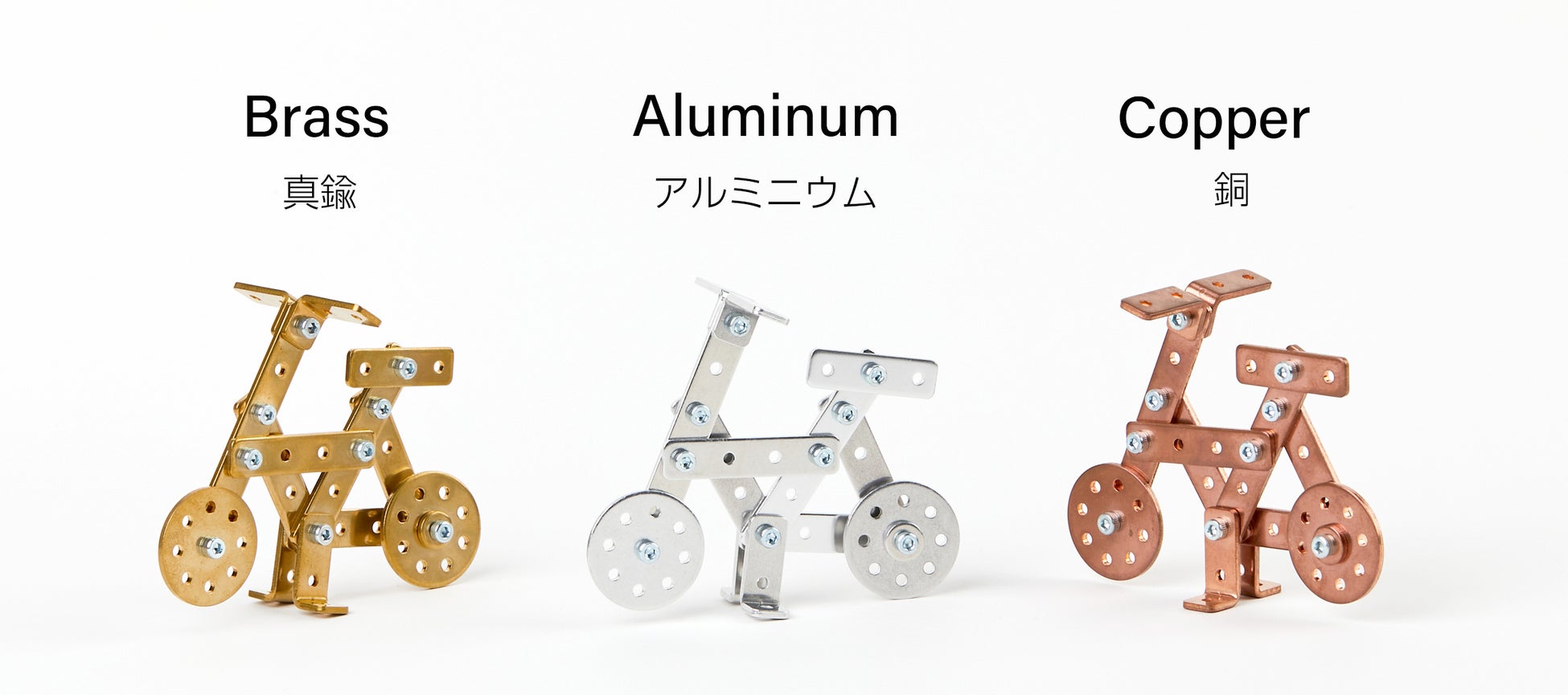 大人も楽しめるザオーブロックとして、プレミアムバージョンが新登場。これまで定番だったアルミ素材に加え、真鍮と銅素材が仲間入り。金属そのものの素材感や、質感の違いを楽しめ、大人の遊び心をくすぐるラインナップ。シンプルで上質なギフトボックス入りで、こだわりのある方へのひと味違った贈り物としても最適です。