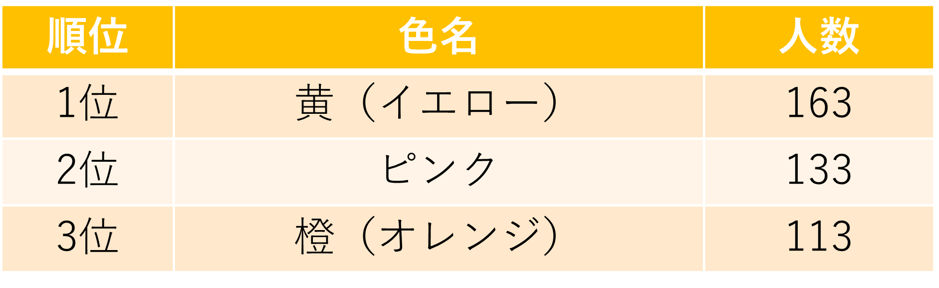 ▶明るい、希望、溢れる幸せを願う「黄(イエロー)」が1位