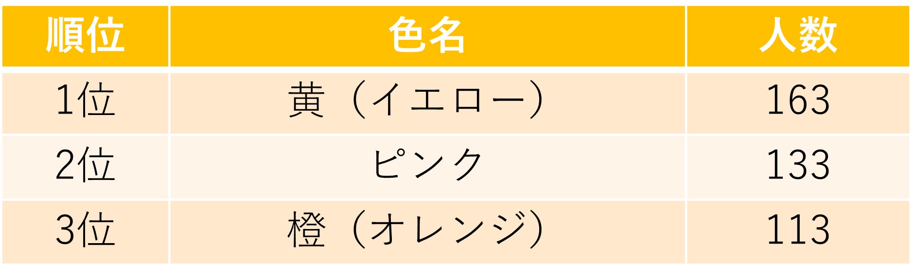 ▶健康で幸せに満ちた1年を願う「ピンク」が2位、「橙(オレンジ)」が3位