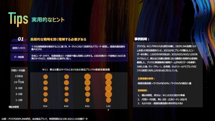 2.W11に向けて長期的な準備をすることがより高い利益につながる。リーチ数が十分であれば、長期的に顧客ターゲットの運用をすることで、投資報酬を最大化することができる。