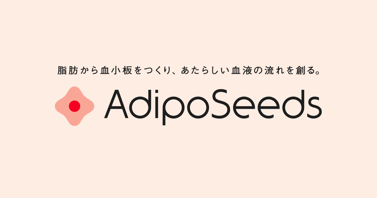 AdipoSeedsは、「脂肪から血小板をつくり、新しい血液の流れを創る」をミッションとして掲げており、主に廃棄予定の脂肪から安全で医療応用可能な血小板製剤を低コストで供給し、今後の少子高齢化社会において、世界的に加速する血小板不足という課題の解決に貢献し、血小板の関わる治療行為をより安価に安全に提供できる未来を創り出すことを目指しております。