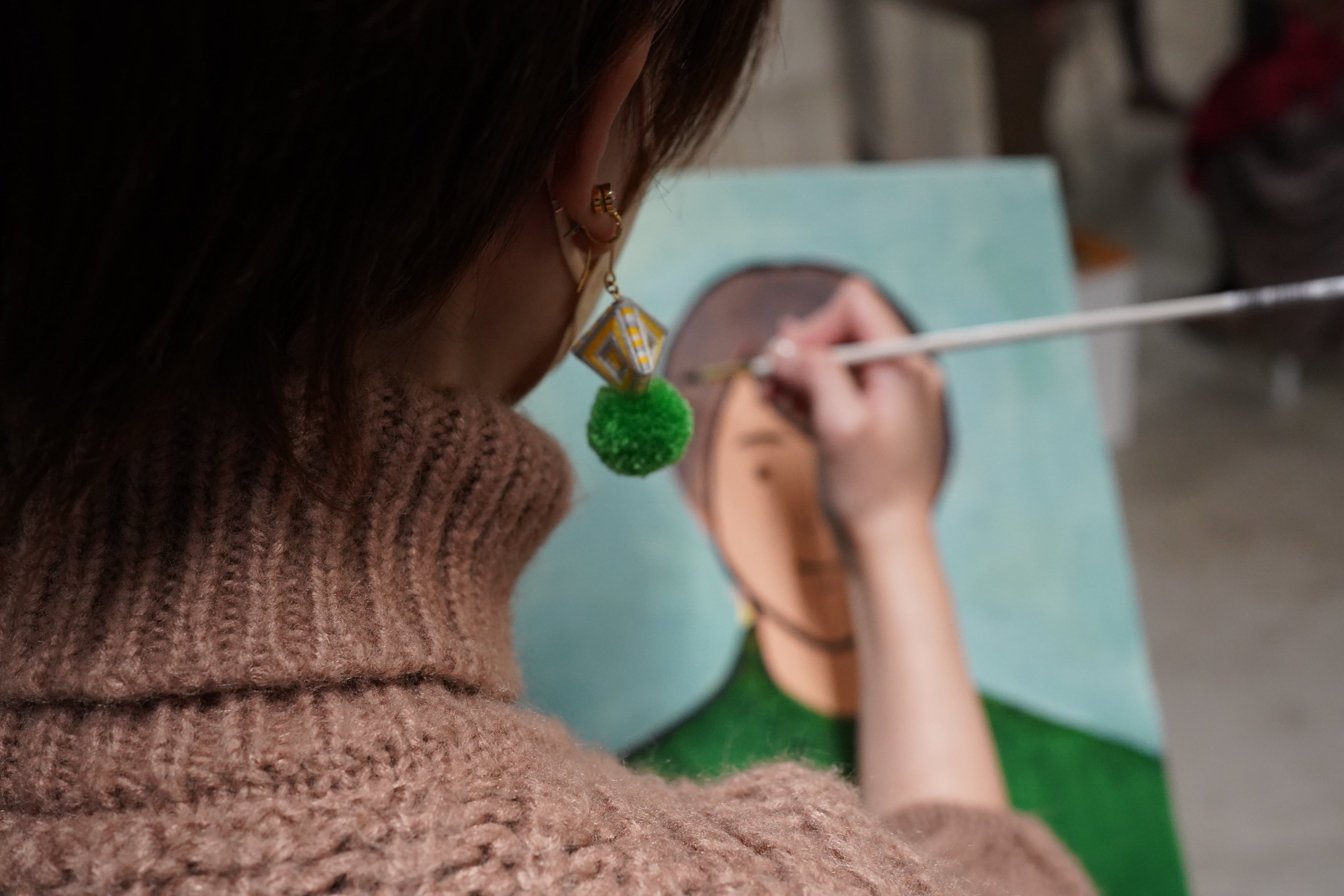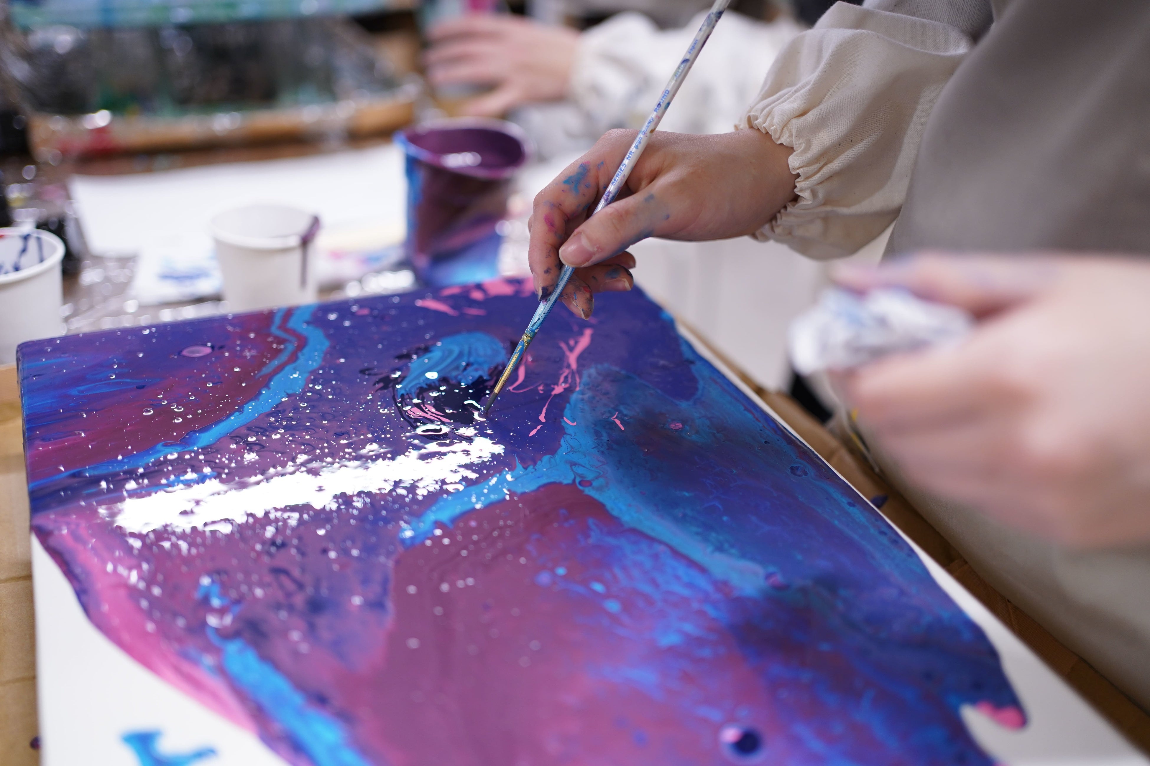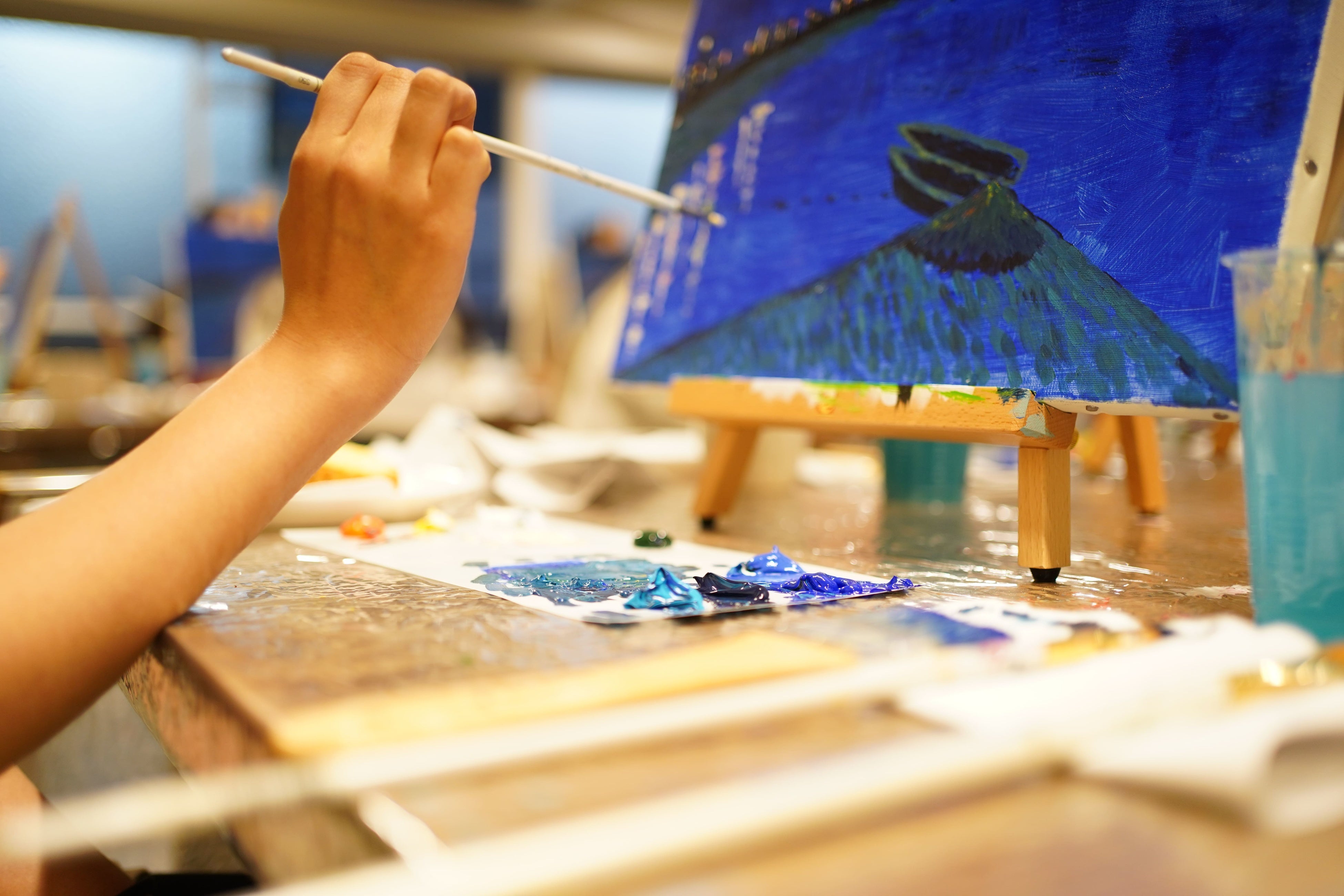 ・絵具や筆、キャンバス等の画材はもちろん、お召し物が汚れないためのエプロンや、持ち帰り用バッグ等も全て、我々がご用意致します。お客様は、ウェブサイトで事前にご予約頂き、当日ご来店頂くだけ。