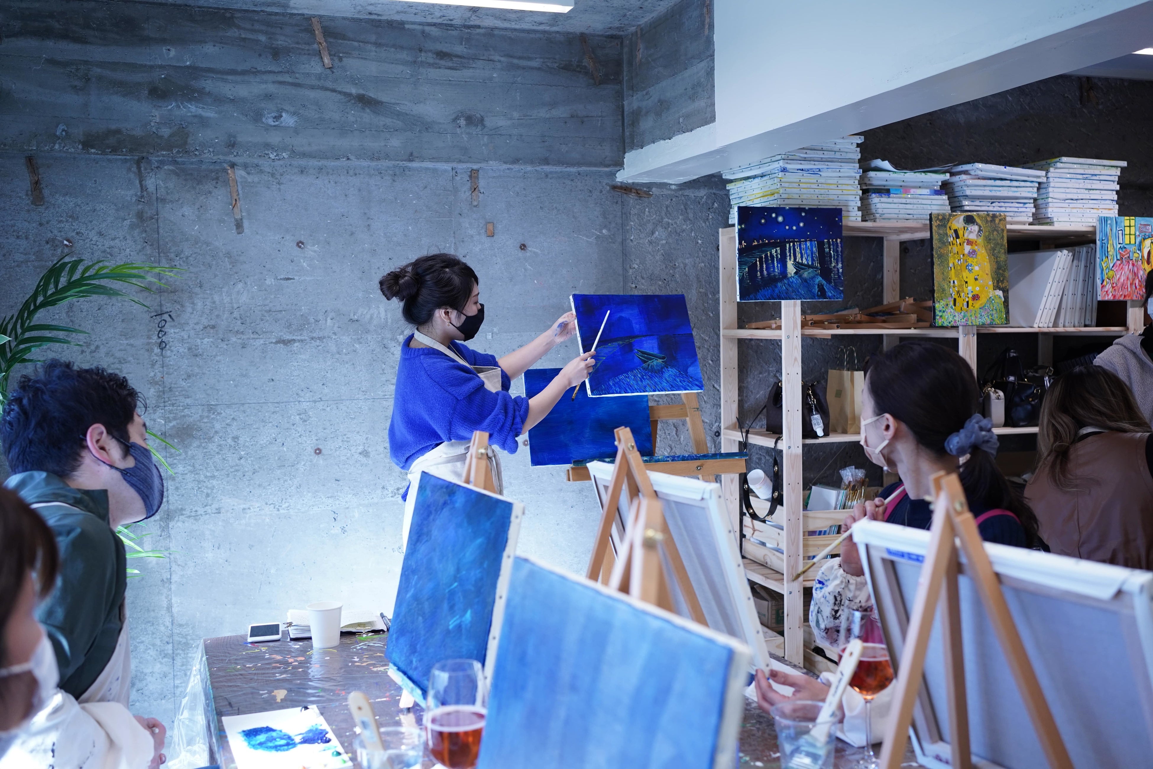 ペアリングワインを片手にゴッホやクリムトの名画を描く、120分のアートワークショップ「artwine.tokyo」が、根津/上野エリアに第一号店を、2月1日オープン。