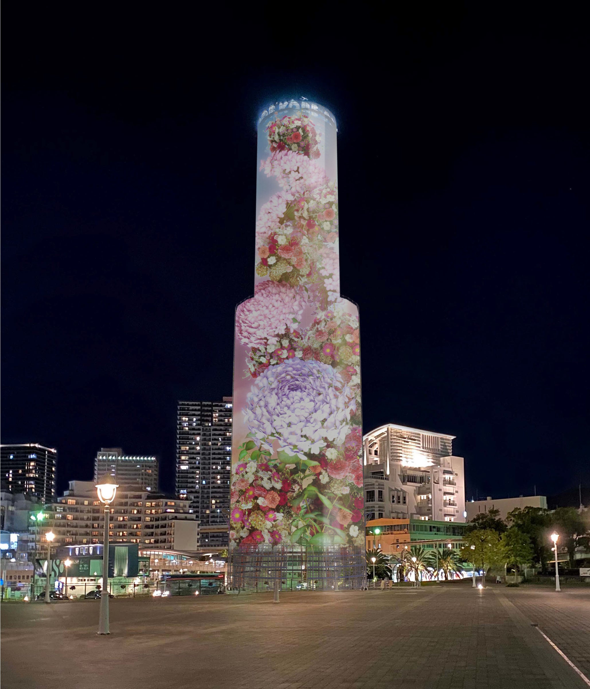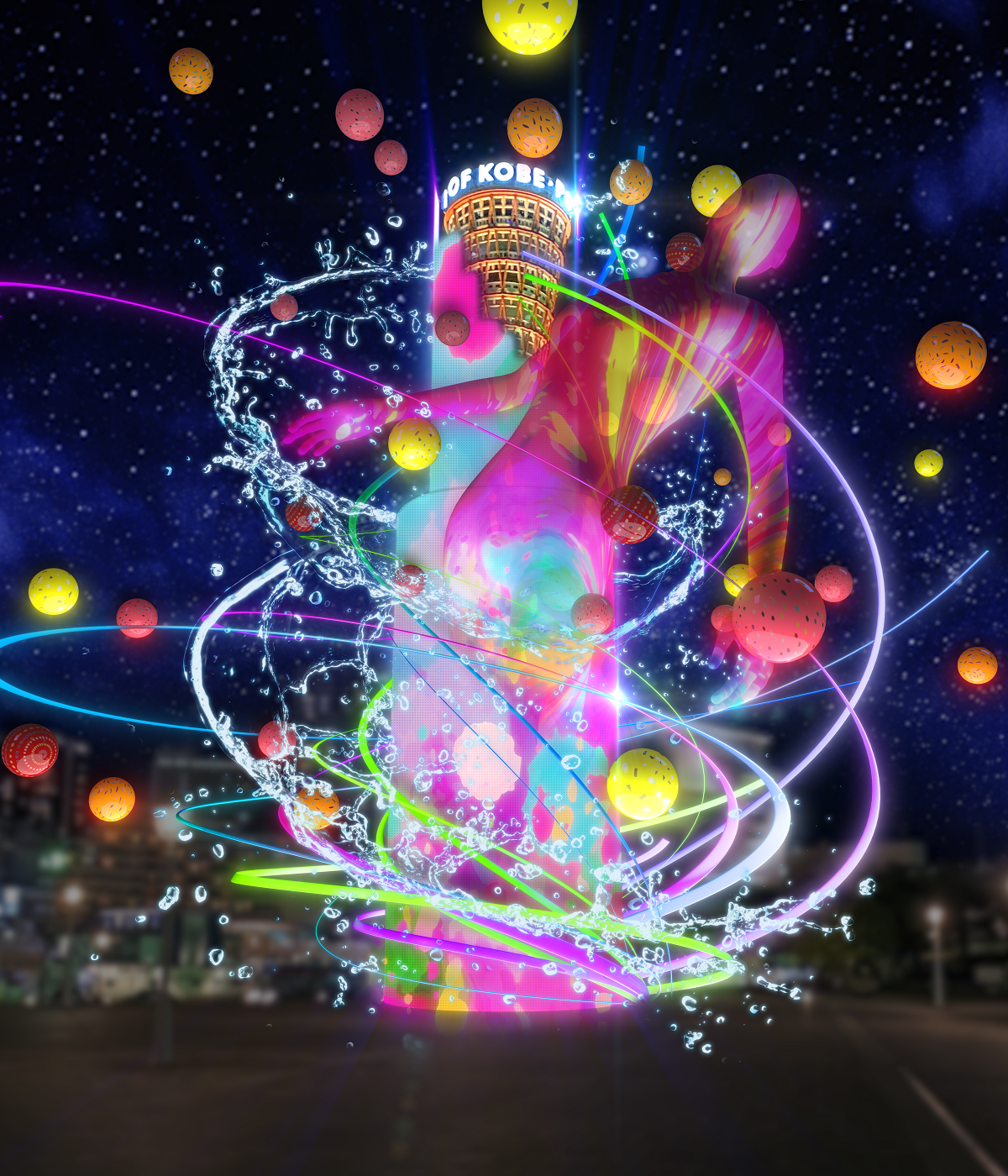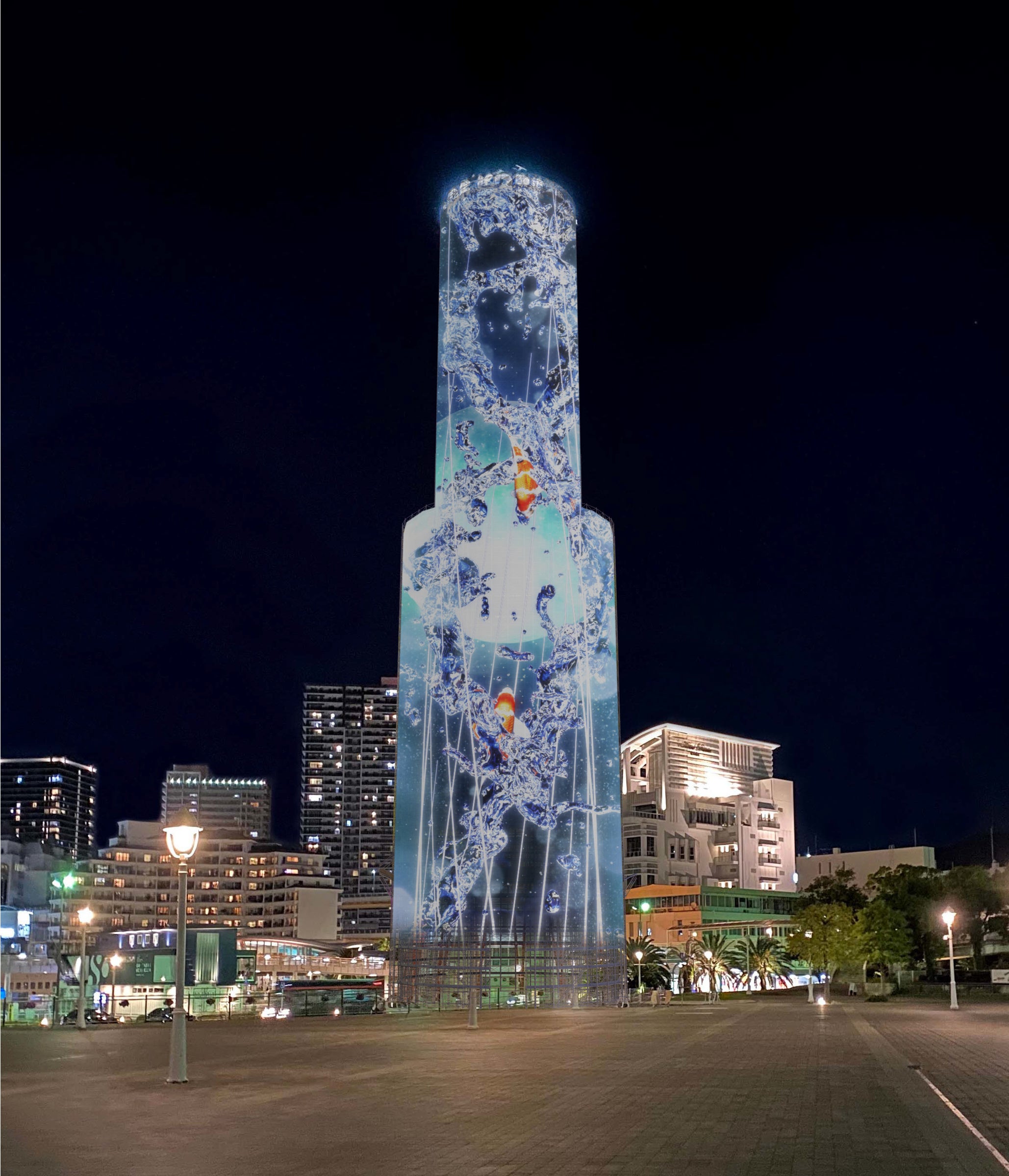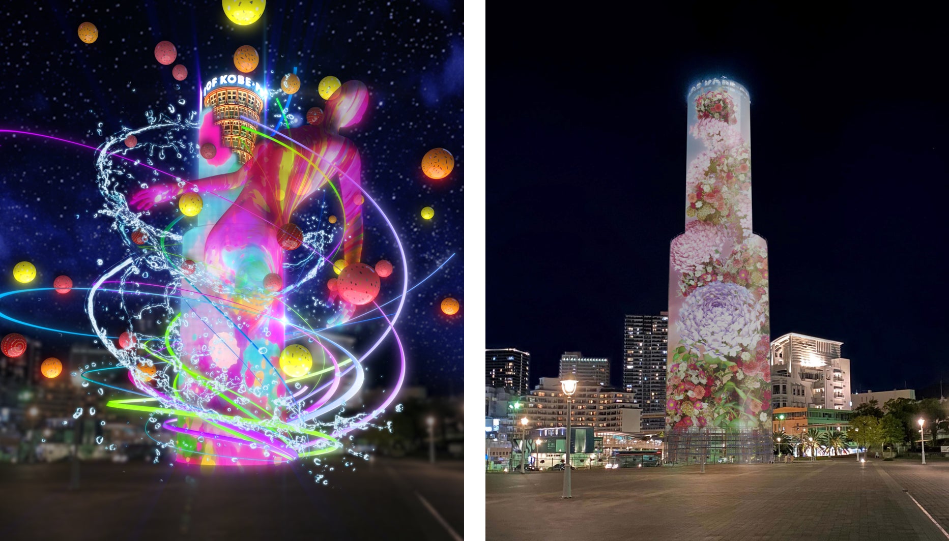 本プロジェクトの幕開けとして、神戸ポートタワーをアートのキャンバスに見立てたプロジェクションマッピングを