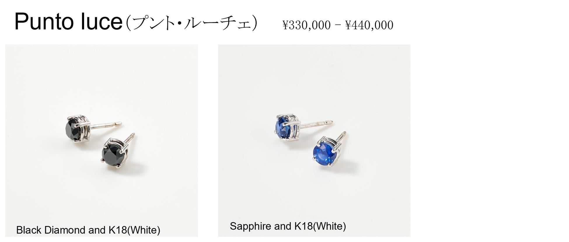 K18(ホワイト)とブラックダイヤモンド、サファイヤのピアス。