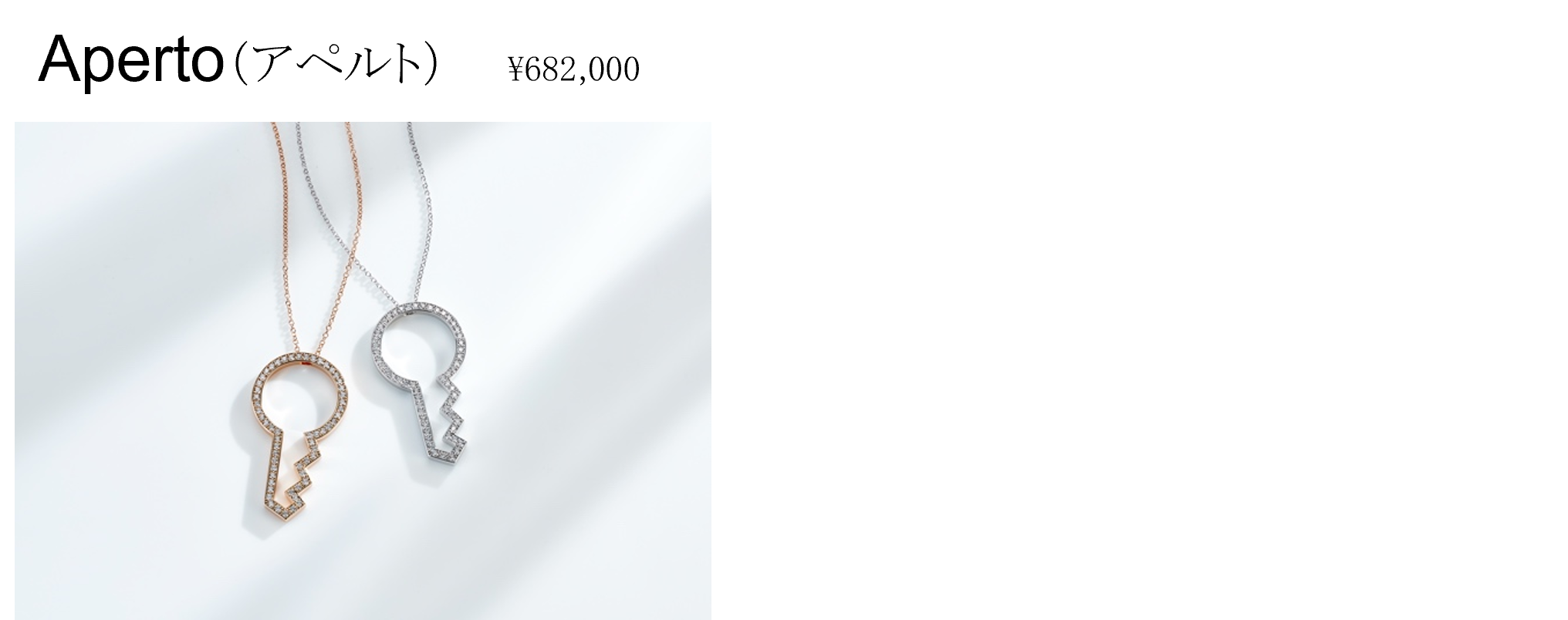 ローンチ時のラインナップとしてカギモチーフを多く採用しているのは、あなたの心の扉を開けるジュエリーでありたいというADOROの思いを表しています。