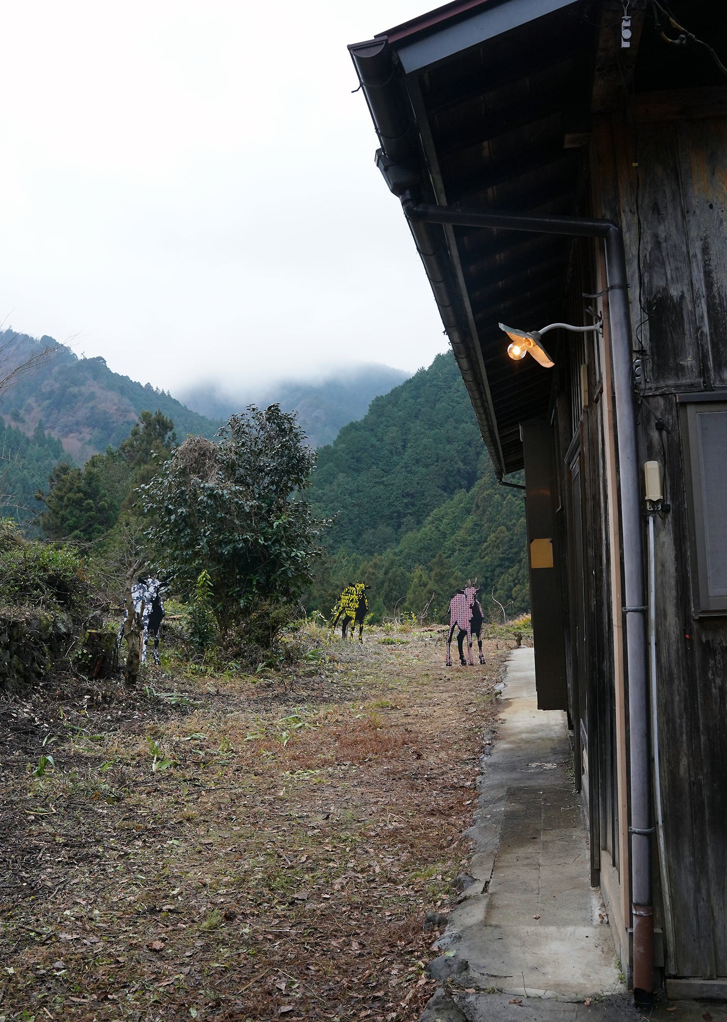 本プロジェクトでは、山郷に佇む築90年の古民家(「ひざと古民家」会場)と廃工場(「旧ガラス工場」仮設会場)を会場に活用、風土と溶け合った展示を展開します。まるで、「なにかわらし」が居るような、ぱっと見たことのない風景が広がるような、そんなサイトスペシフィックな作品が展開します。