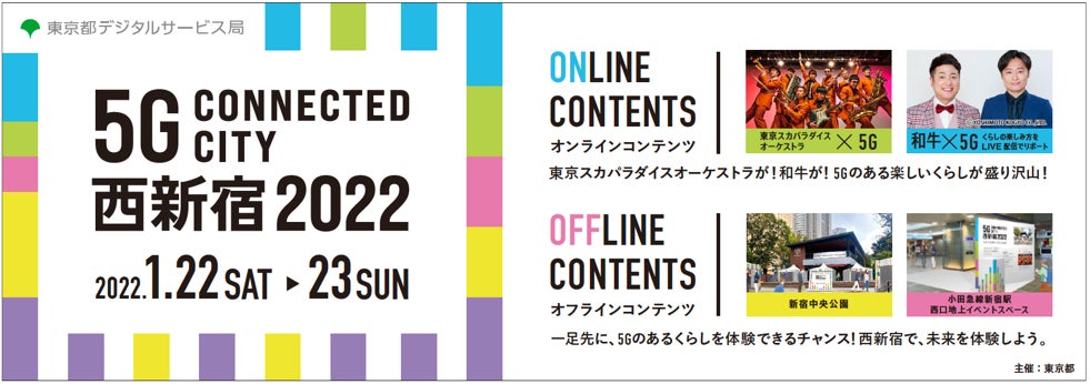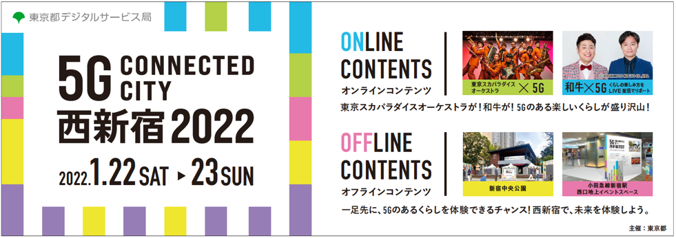 東京都は、5Gや最先端技術を活用したサービスを多くの都民に体験していただき、都の施策への理解や共感を拡大するイベント『5G Connected City 西新宿 2022 ~つながるまちと新たな生活~』を2022年1月22~23日の2日に渡って開催します。