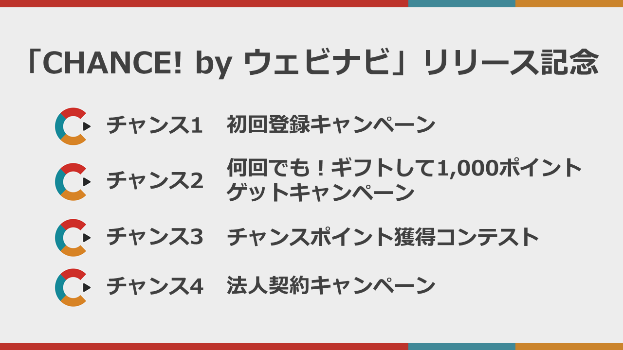 『CHANCE! by ウェビナビ』アプリのリリースを記念いたしまして、以下のキャンペーンを開催いたします。
