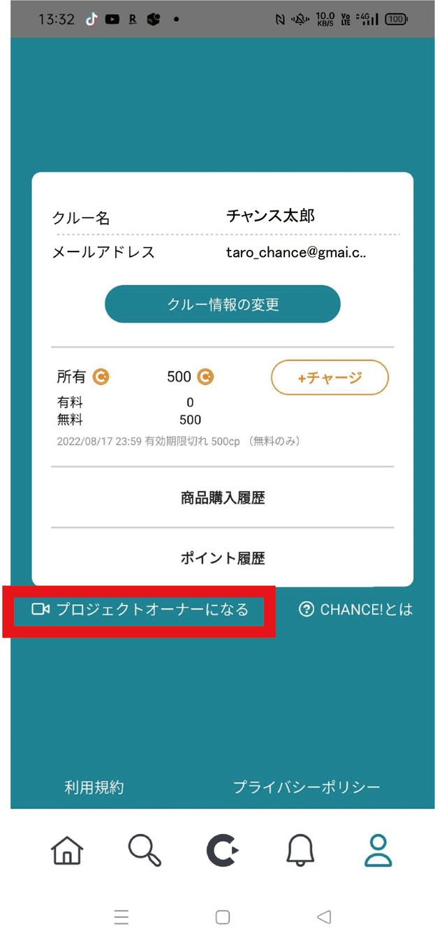 エントリー方法:アプリ内の”プロジェクトオーナーになる”(右図)から