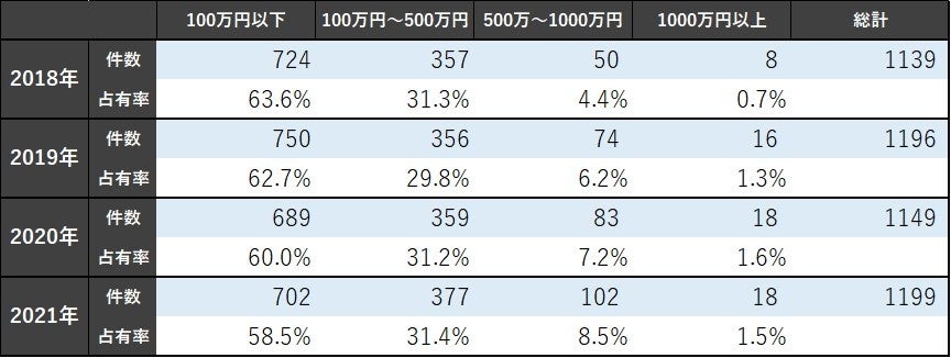 この10年間で中古住宅購入時のリフォーム依頼は増え続けていますが、現状回復の依頼件数は微増。一方、直近4年間は500万円以上のリフォーム件数は倍増しています。コロナ禍であることからリフォーム需要自体は横ばい傾向であるものの、リノベーション工事の依頼は増え続けています。