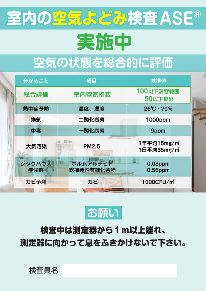 - Q1、空気よどみ検査ASE®は、国が認めた検査方法ですか?