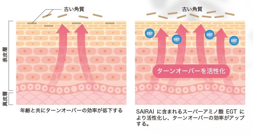 SAIRAI®をお使いいただき、石けんオフメイクを肌のターンオーバーサイクルである最低約1ヶ月間継続していただくことにより、肌の生まれ変わりをぜひ体感してみてください。