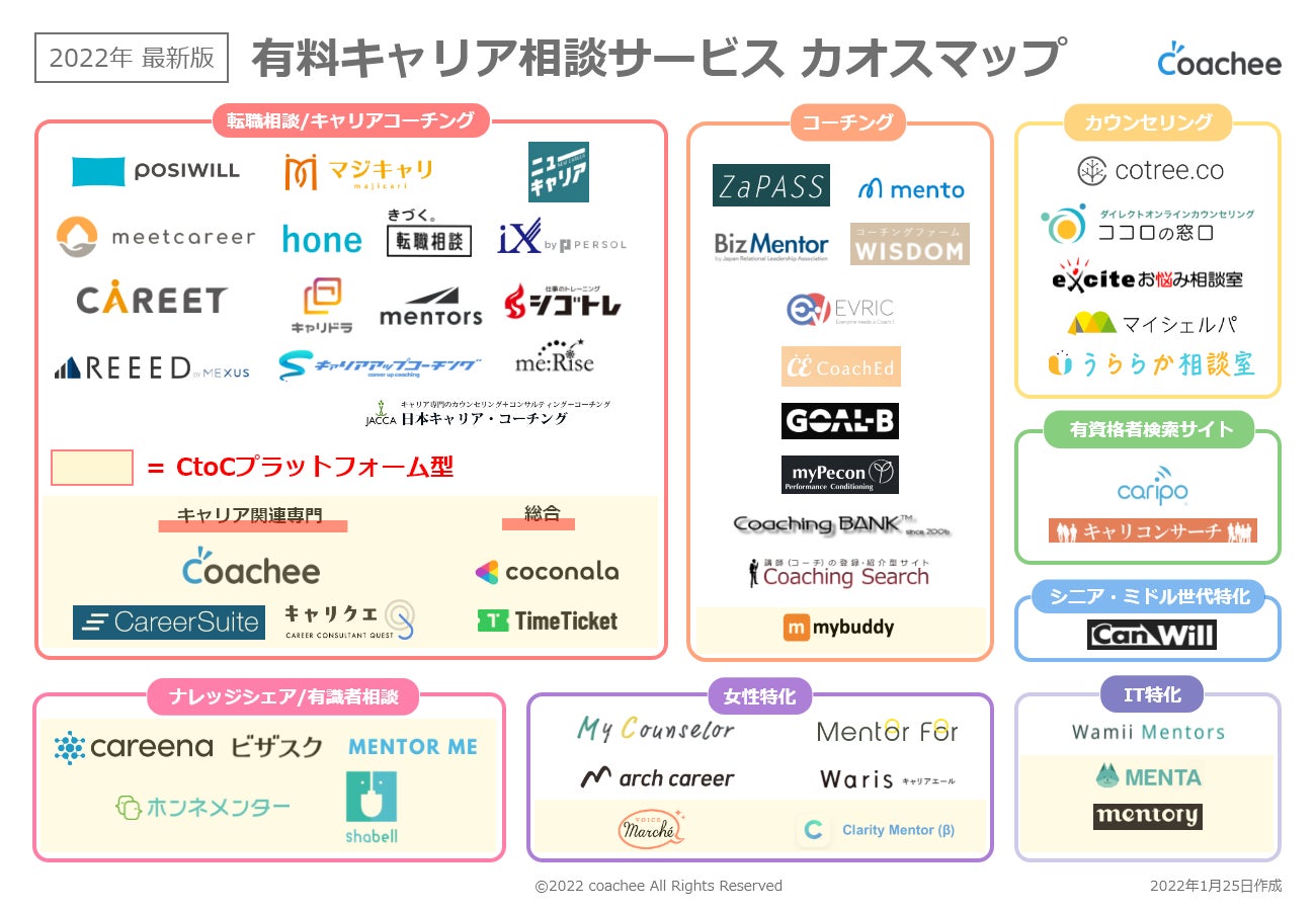 【2022年最新版】<有料キャリア相談サービス カオスマップ/全企業リンク一覧資料付き>を公開 / coachee株式会社