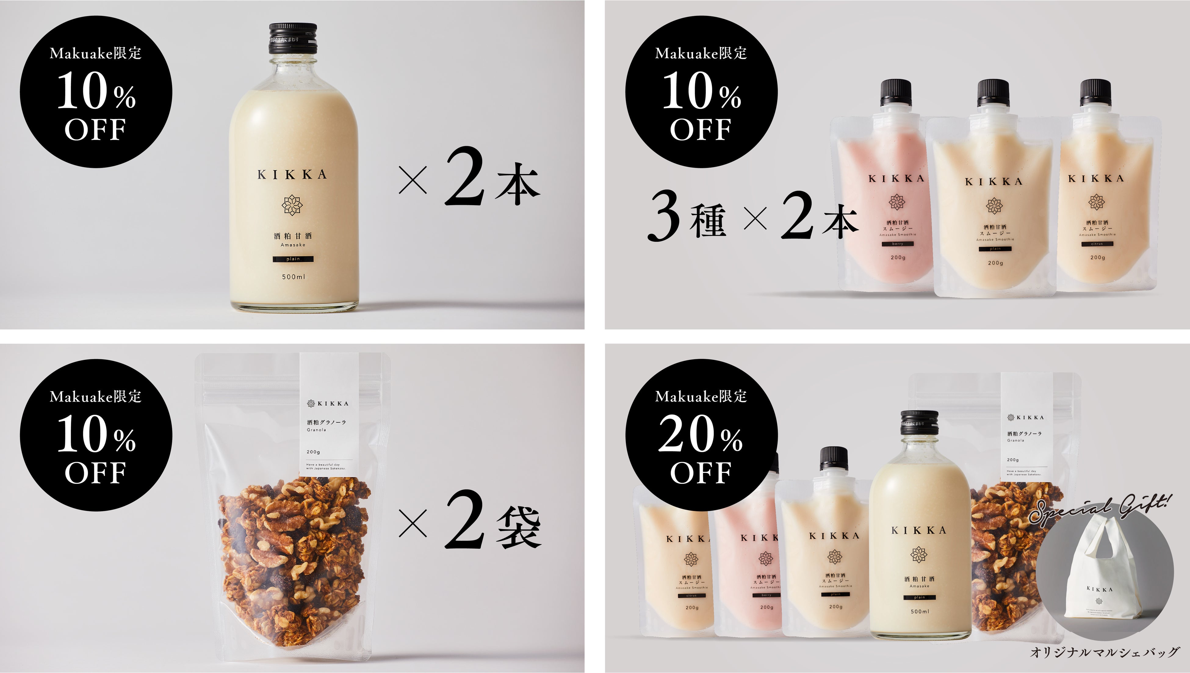 酒粕をリユースした飲料やシリアルなどのサスティナブルな食品を展開する「KIKKA」がクラウドファンディングを実施。