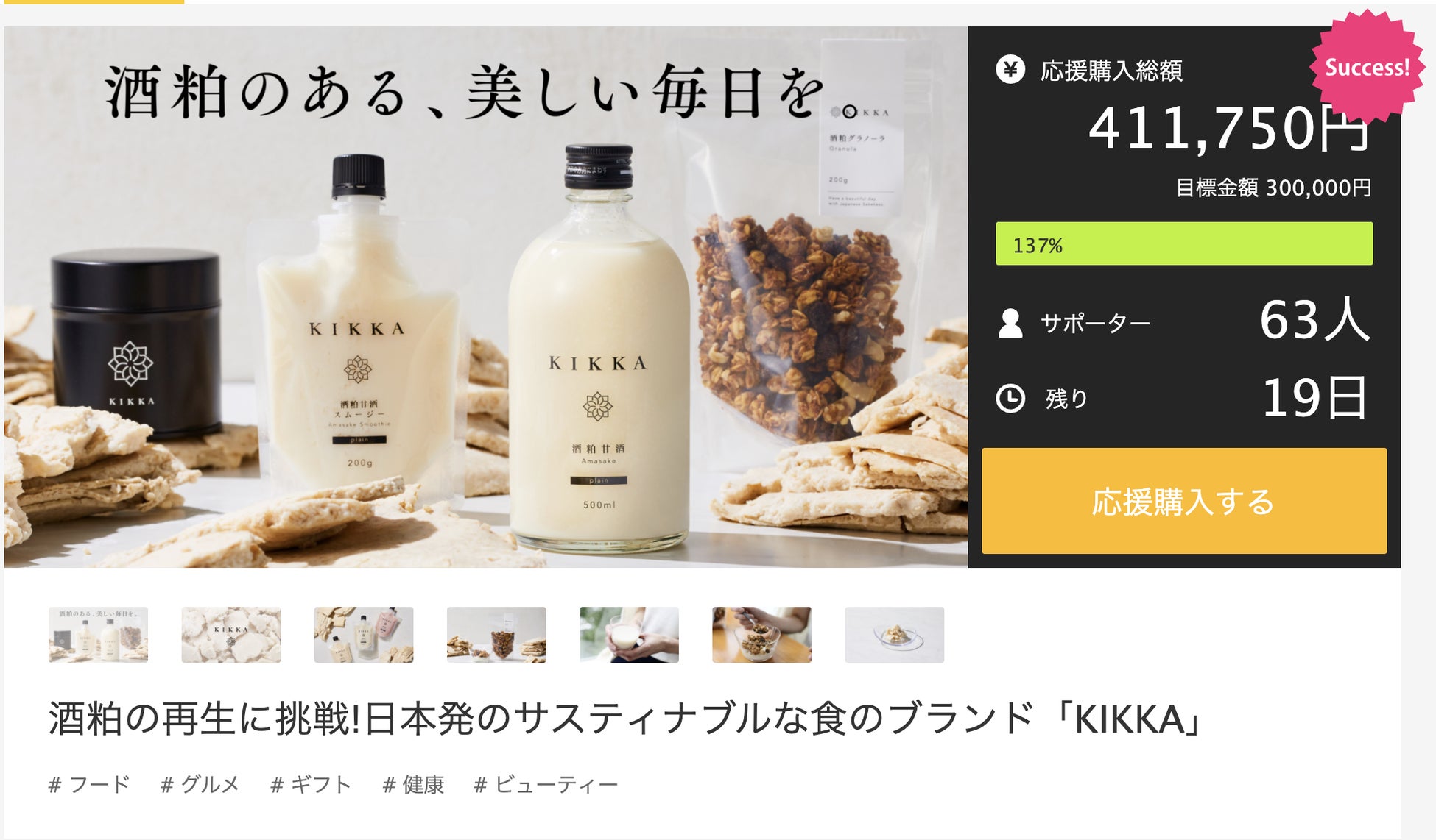 - プロジェクト名 : 酒粕の再生に挑戦!日本発のサスティナブルな食のブランド「KIKKA」