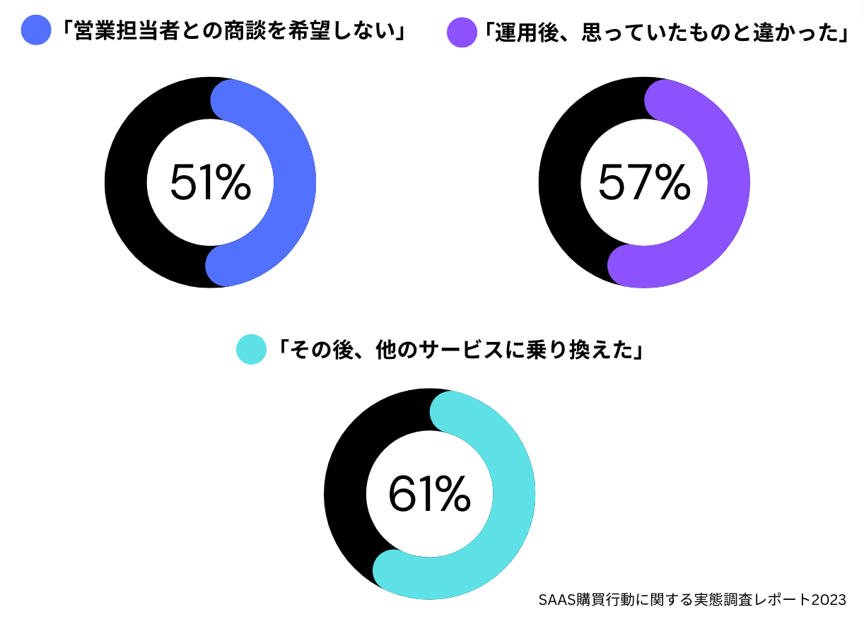 事実2 「導入後思っていたものと違かった」「他のサービスに乗り換えた」など、意思決定がうまくいかなかったのは、60%程度