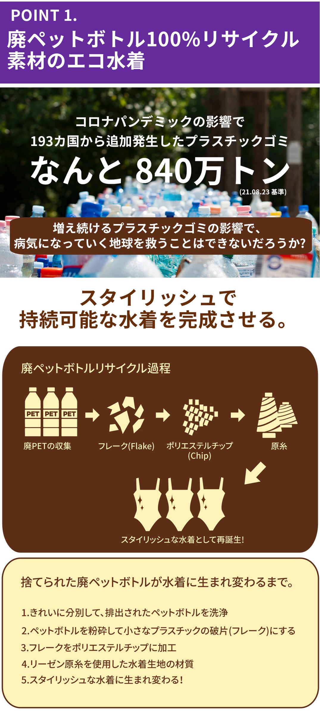 ▣10.5本のペットボトルをリサイクルしたスタイリッシュな水着