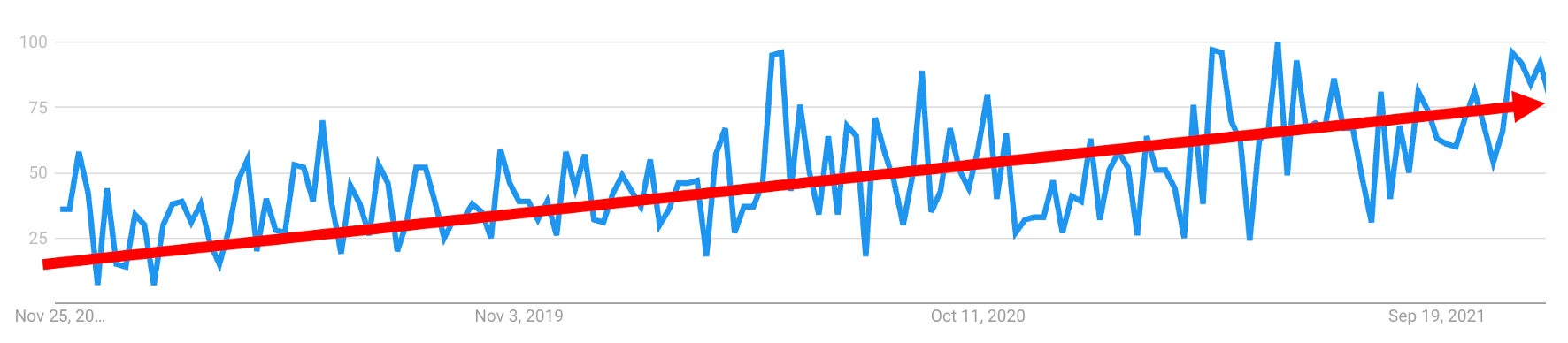 出典:Googleトレンド(キーワード:Well-Beingの検索推移2018/12-2021/12)
