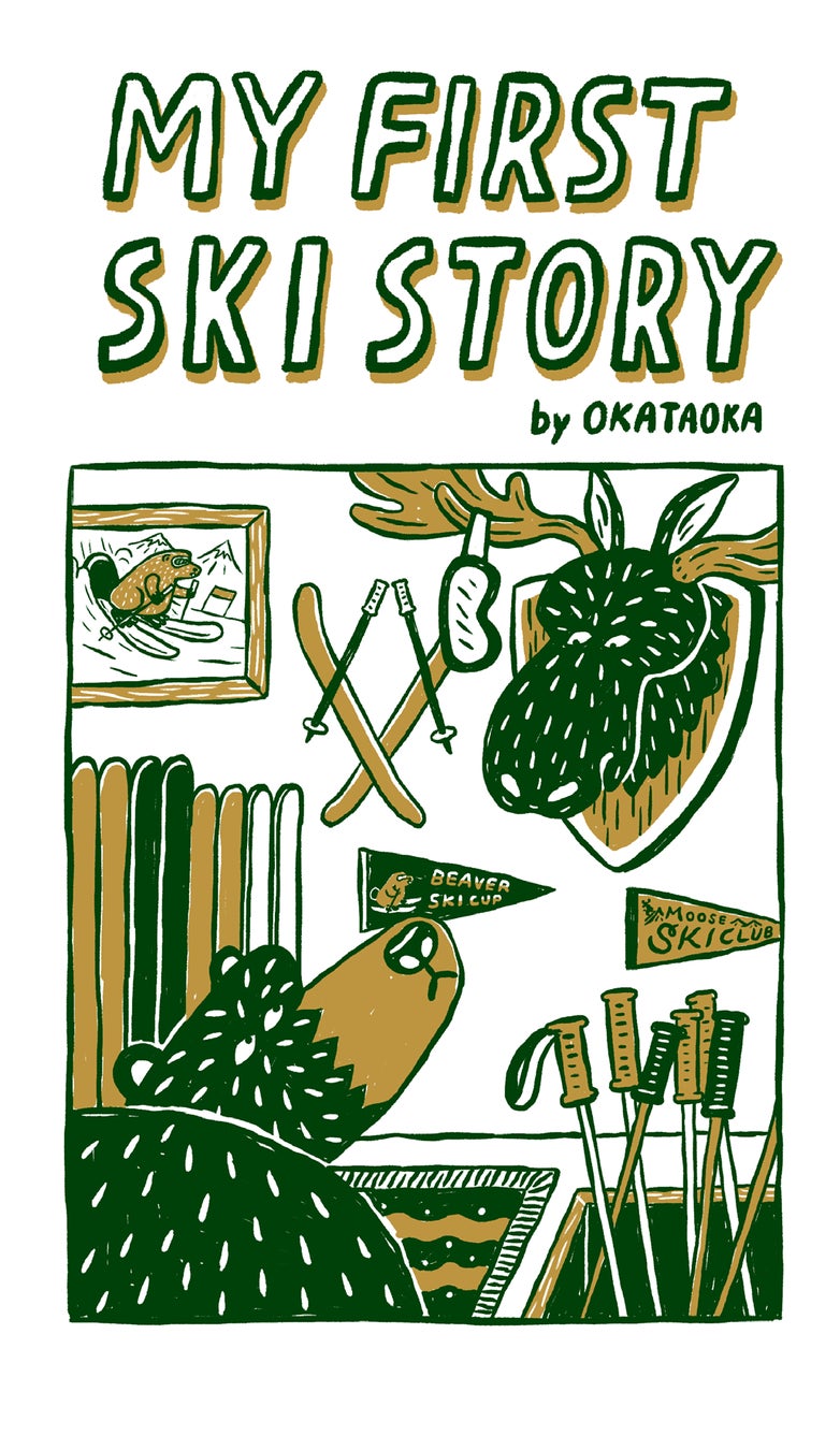「スキーって楽しそうだな、かっこいいな」。イラストレーター・オカタオカによる、スキーに憧れるクマの、はじめてのスキー物語。