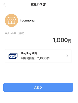 4)PayPayアプリが自動で立ち上がります。金額を確認して「支払う」をタップします。
