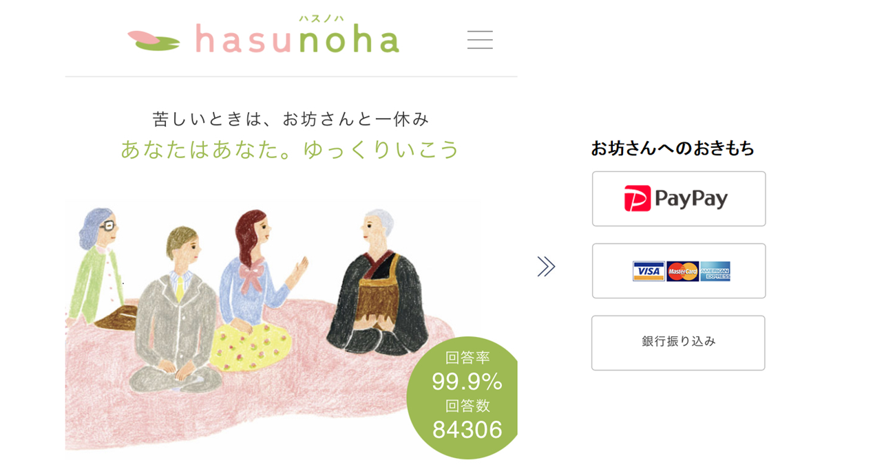 お坊さんにスマホで相談できるQ&Aサイト「hasunoha(ハスノハ)」(代表:堀下剛司。ロータスリーフ合同会社CEO、共同代表:井上広法。浄土宗光琳寺住職)は、相談に向き合ってくれたお坊さんへの感謝として、PayPayで簡単に「おきもち」を送れる機能をリリースしました。