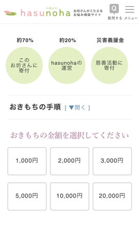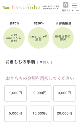 *「おきもち」は、約70%をhasunohaよりお坊さんに寄付し、残りをhasunohaの運営にあてています。