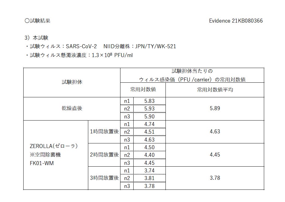 ~付着ウイルスの空間除去試験で効果を認定~