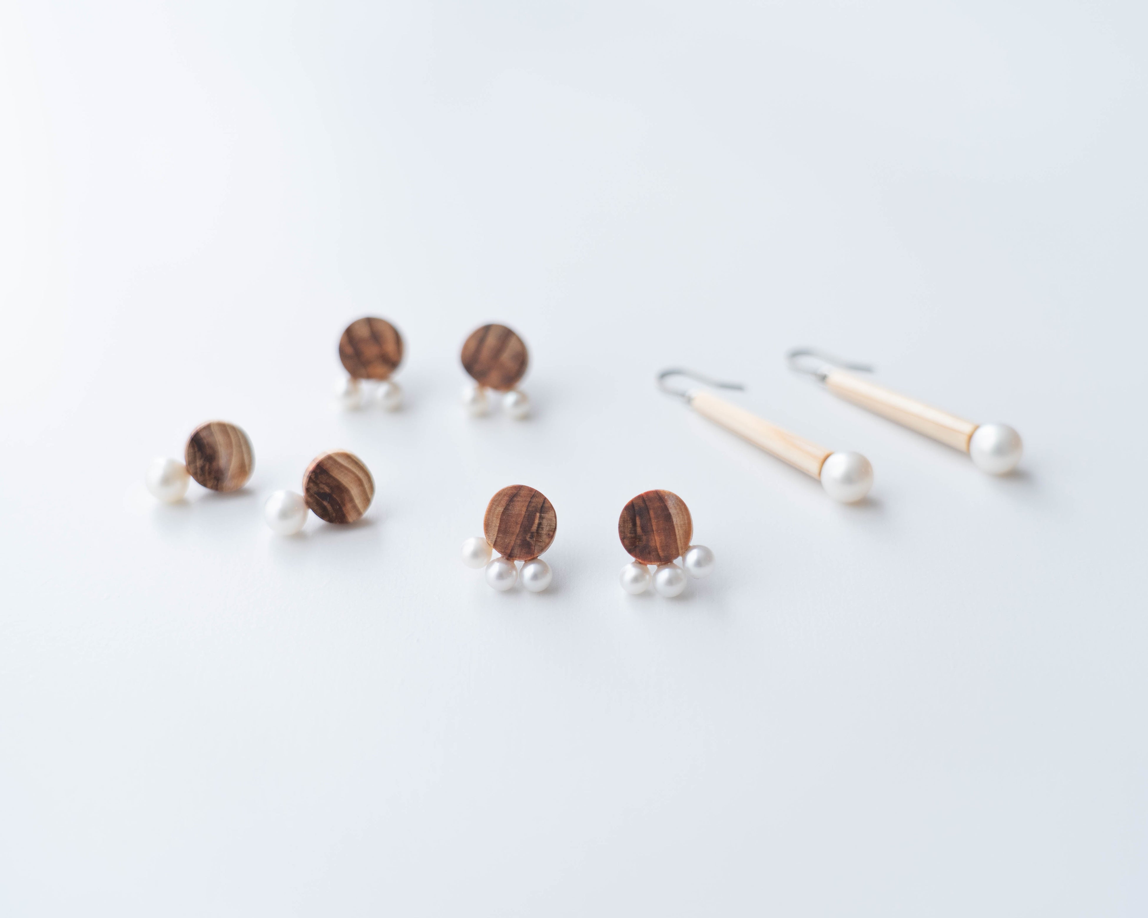 真珠は奈良時代には高位な人々の象徴であり、正倉院の宝物にもなっています。そんな真珠と吉野杉を合わせた特別なジュエリー。お箸を制作する際に省かれるような木の節目もデザインとして楽しめるようにデザインしました。