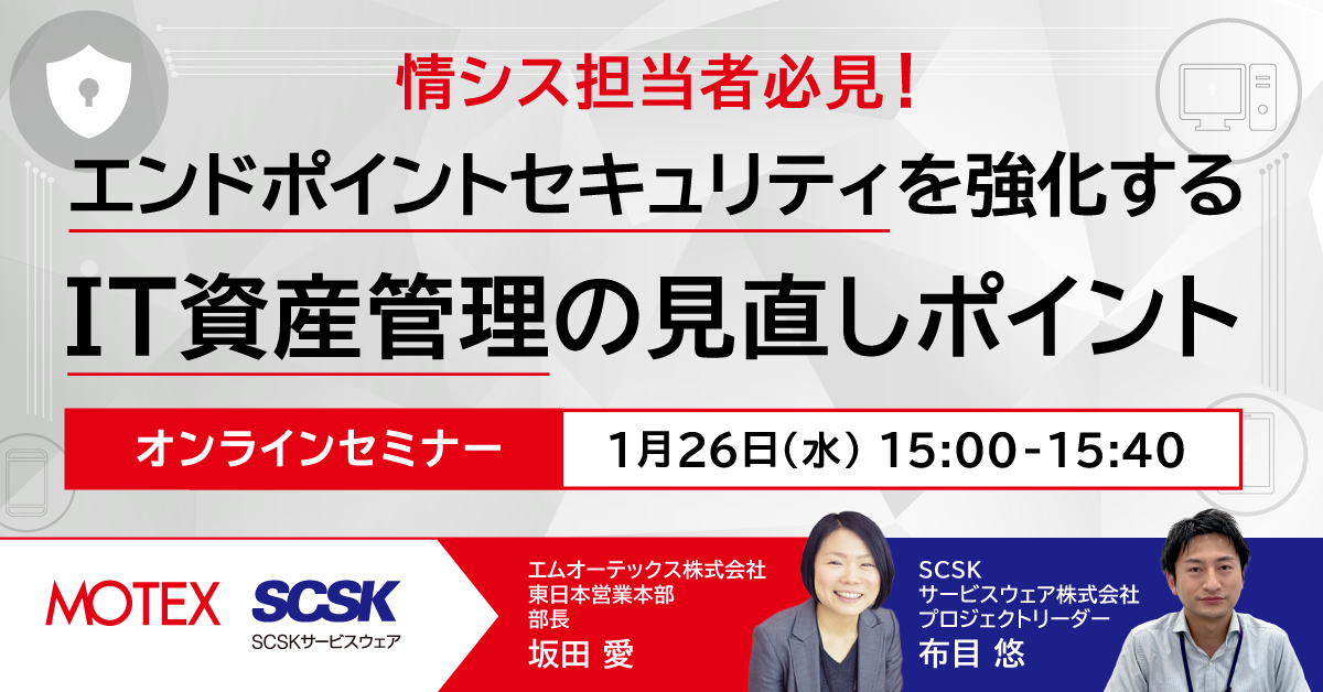 【情シス担当者必見】エンドポイントセキュリティを強化するIT資産管理セミナーを1月26日(水)に開催