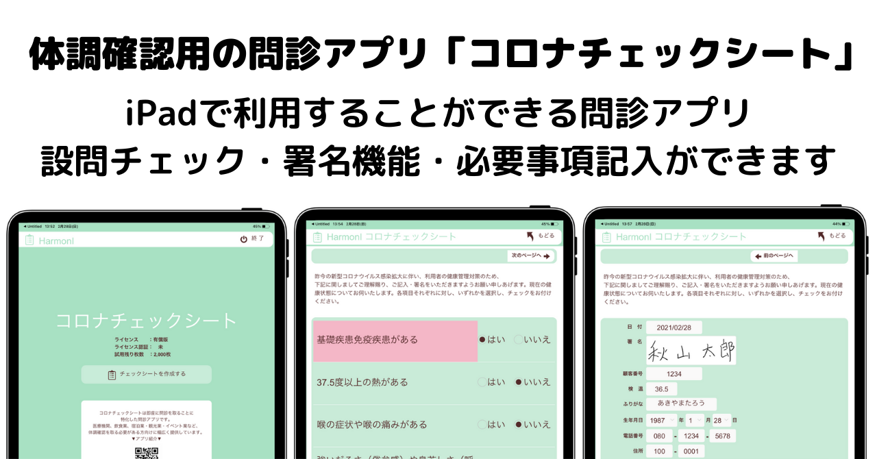 体調確認が行える問診アプリ「コロナチェックシート」のiPad向け製品版をリリース