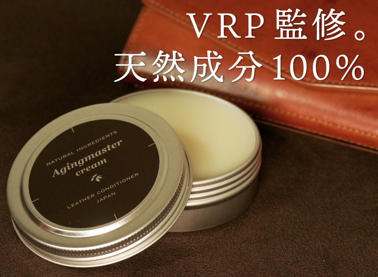 今回の先行予約では、ホホバオイルやビーズワックス・ラノリンなど天然成分100%で作られた、皮革用「エイジングマスタークリーム」とのセット販売もございます。(VRP監修、コロンブス社製)