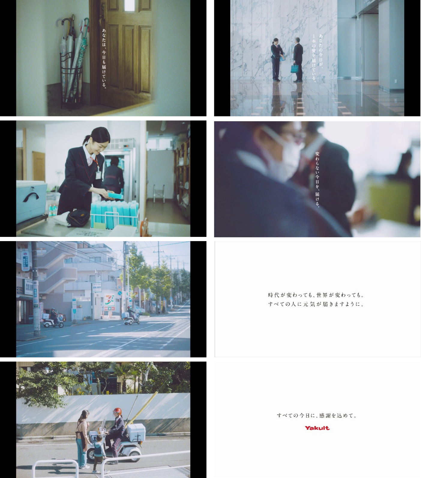 このショートフィルムは、変わってしまった世の中においても、すべての人に元気をお届けしたいというヤクルトレディの願いをお伝えできればとの願いを込めて制作しました。