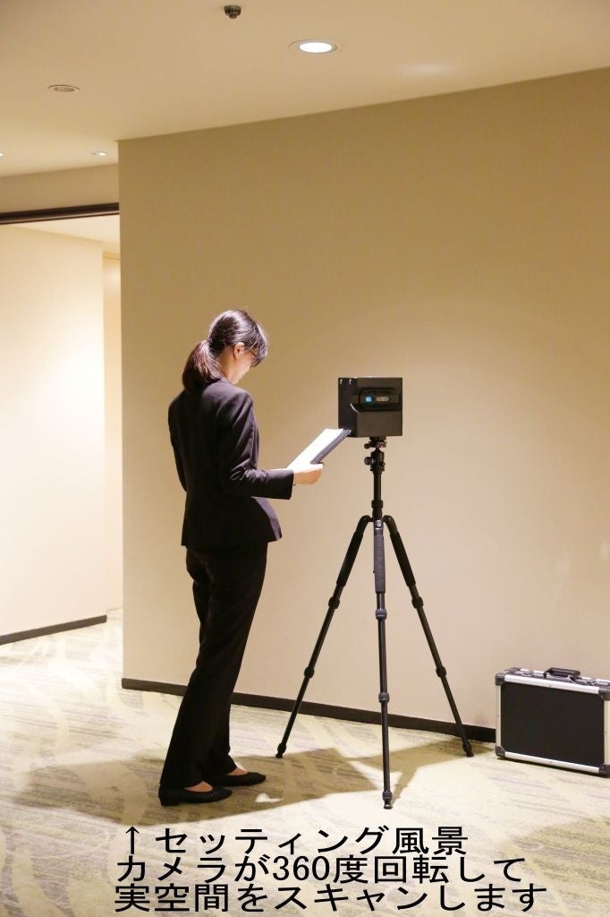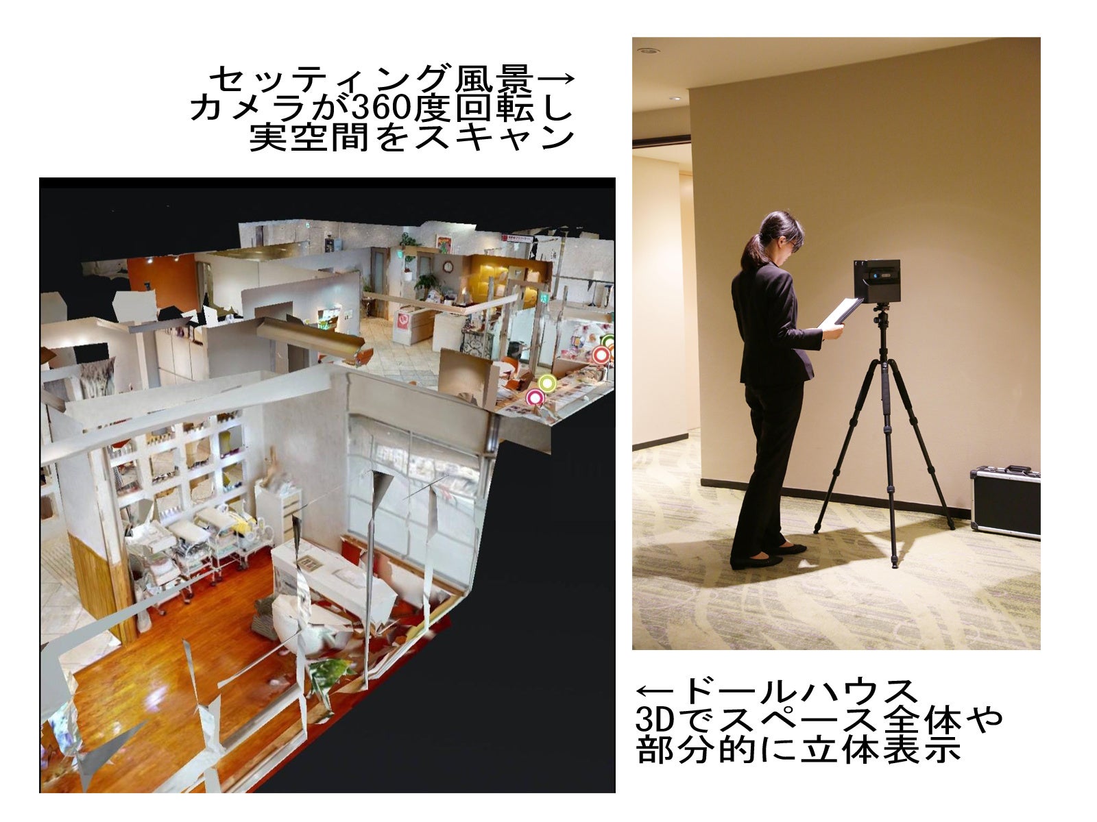 我々が現地へ伺い、特殊な3Dカメラで空間を撮影し、撮影した画像を加工し、WEBページと融合させます。