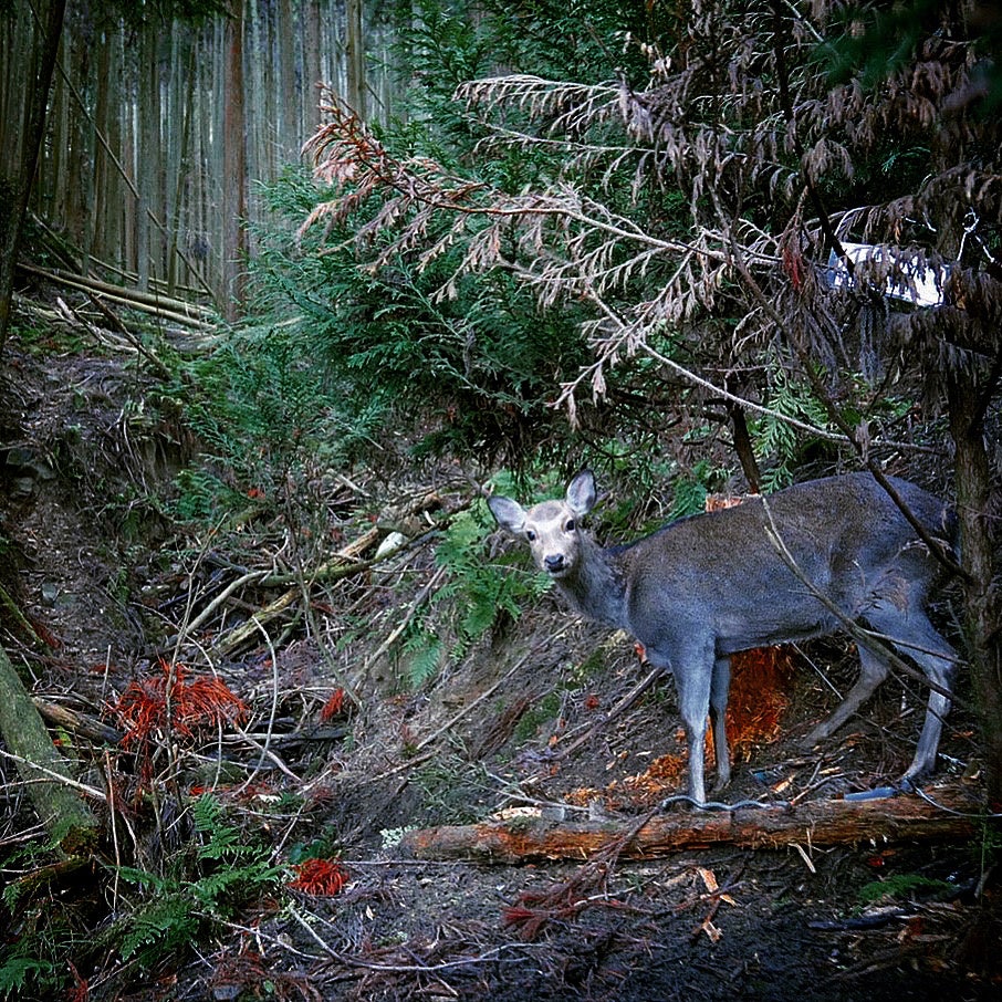 宇陀市内の山林では獣害が確認されており、獣害被害箇所に赤外線カメラを設置しました。林業や森林環境への被害をもたらす鹿が多数確認されたことから、2021年12月に実際に罠で鹿を捕獲し、解体しました。