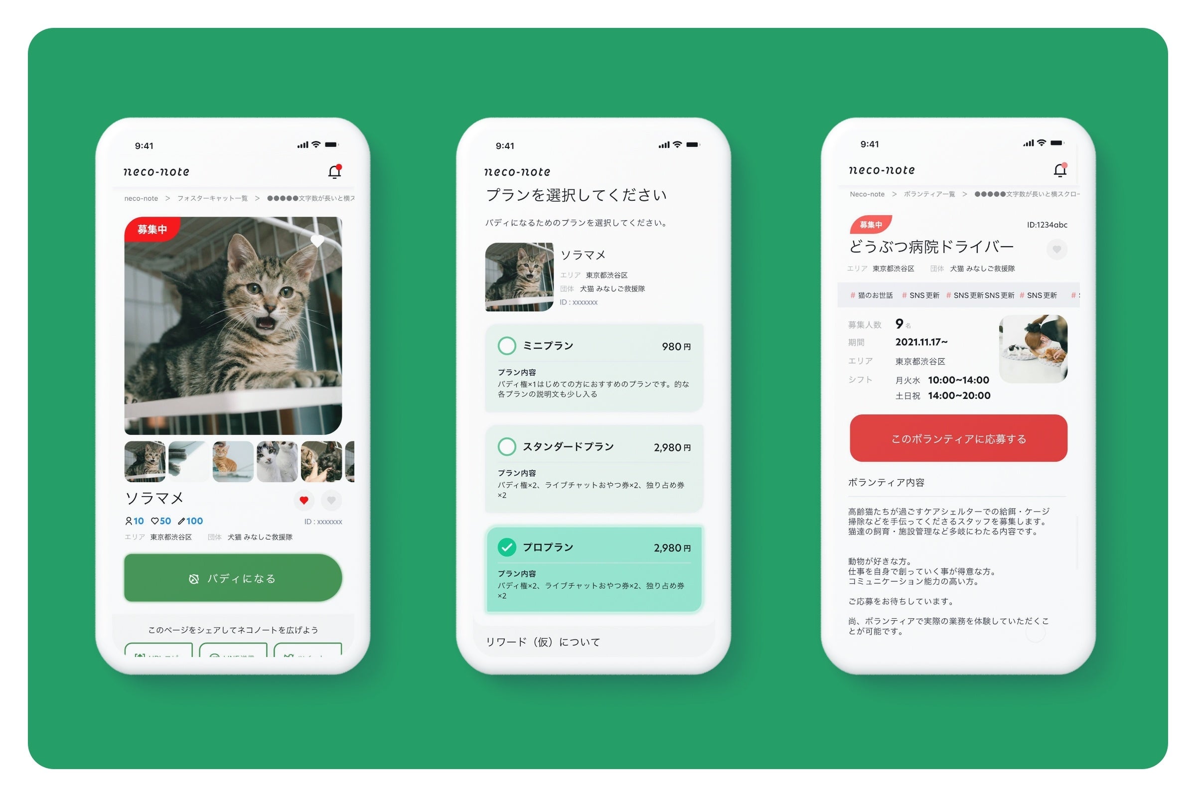 他にも、ボランティアマッチング機能やバディの活動履歴を可視化する機能で保護猫団体の活動をサポートします。
