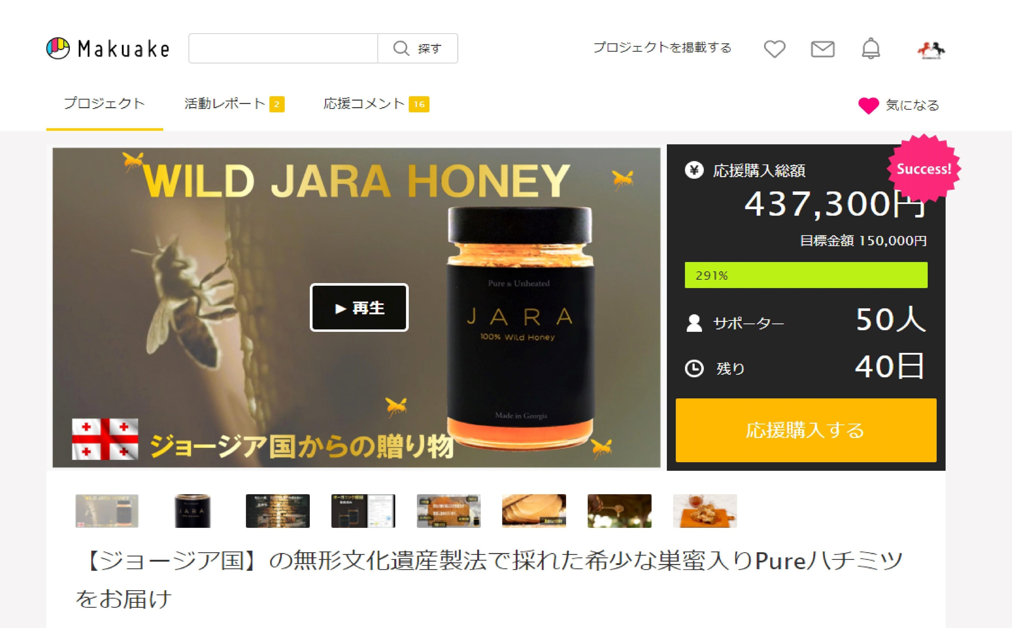 Makuake掲載開始2時間で目標金額達成したジョージア国で無形文化遺産に認定された製法で作られた 【WILD JARA HONEY】を先行販売中