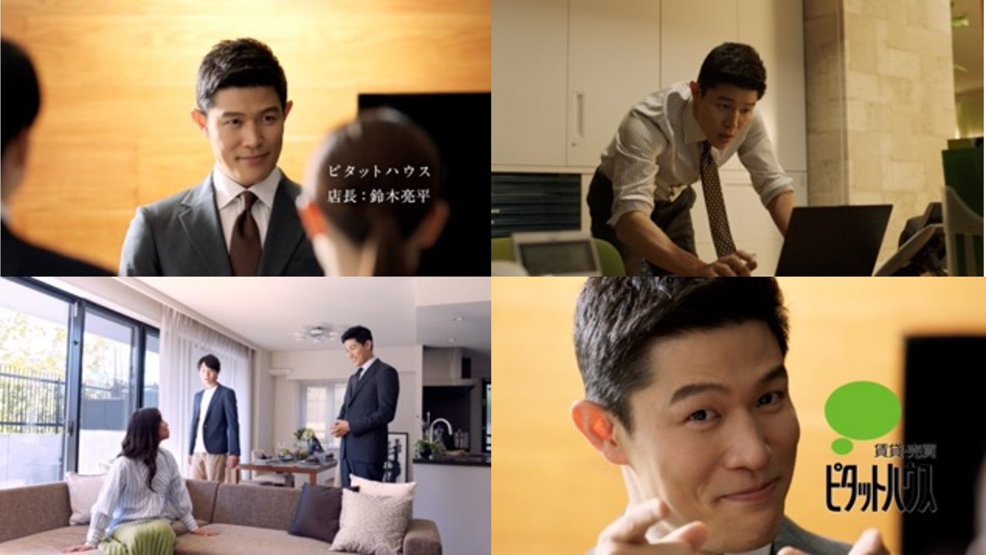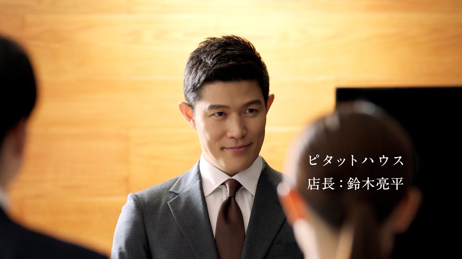 本CM「新任店長挨拶篇」は、ピタットハウス新任店長役の鈴木亮平さんがお客様との関わりやメンバーとのチームワークを大切にしながら仕事に奮闘し「不動産売買を通してお客様の幸せを増やす」ことを伝える内容となっています。オフィスワークでの真剣な表情や、以前家の購入をお手伝いしたお客様とのコミュニケーションを楽しむ柔らかい表情、納得できる家を見つけたい夫婦に物件をご紹介する店長として安心感ある表情、最後にメンバーに見せるチャーミングな笑顔など、様々なシチュエーションで見せる「鈴木店長」の魅力あふれる表情にもぜひご注目ください。
