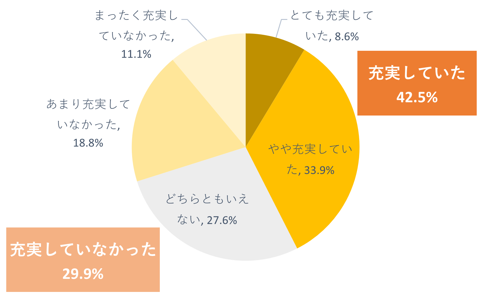 ●今年1年間の最終的な生活の充実度は42.5% が「充実していた」と回答
