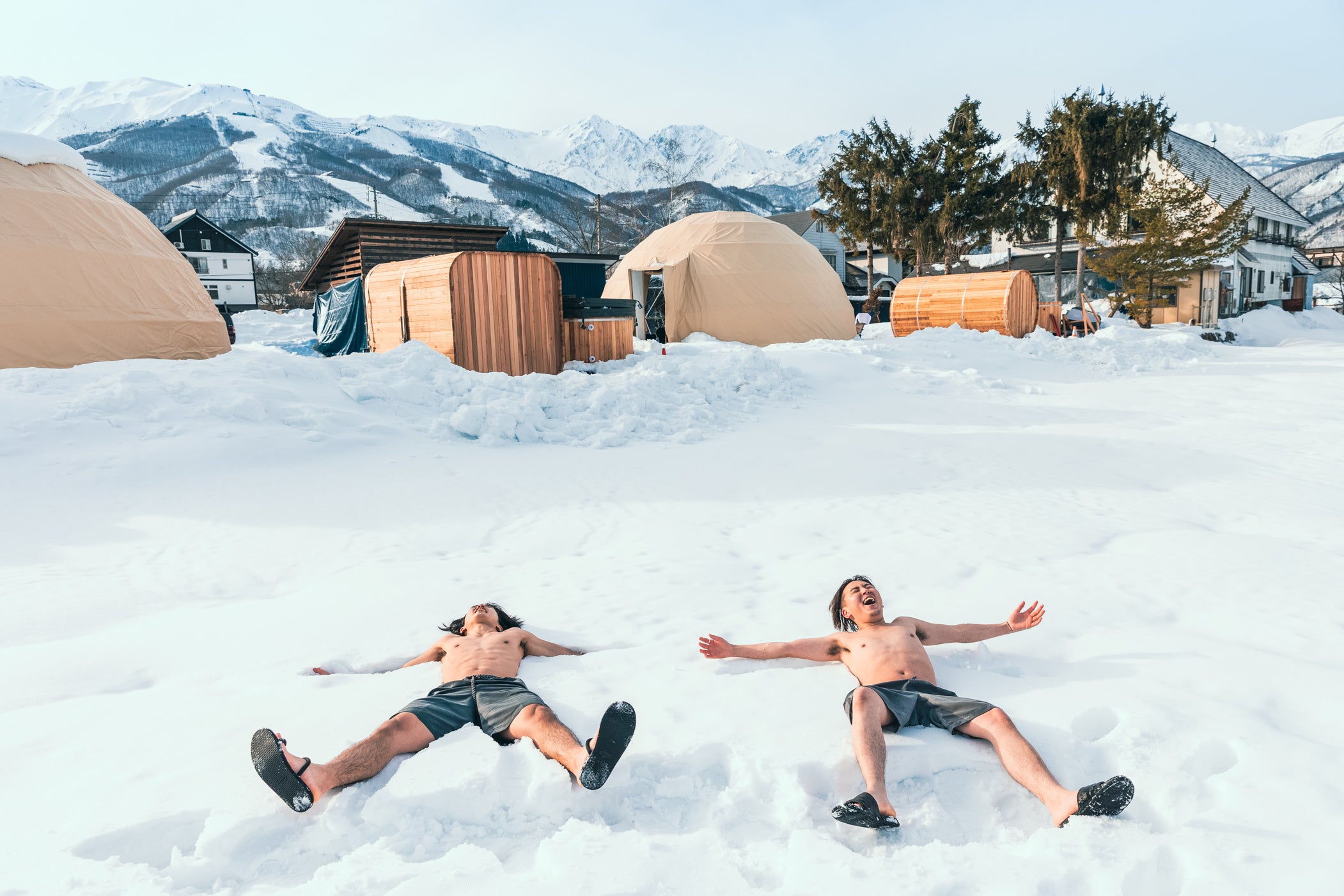 水風呂だけではなく白馬のパウダースノーにダイブして体を冷やす体験ができるスペースも建築予定ですので