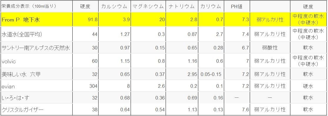 ぴー坊の地下水にはカルシウム、マグネシウムが他の天然水と比べ多く含まれております。