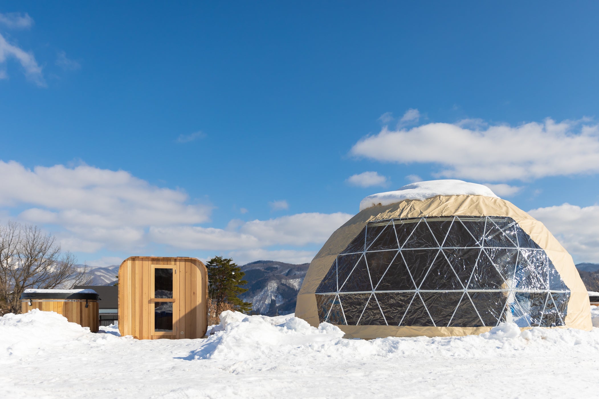 【長野県白馬エリア初!】雪景色の中で「ととのい体験!」プライベートサウナが楽しめるグランピング施設がオープン!!
