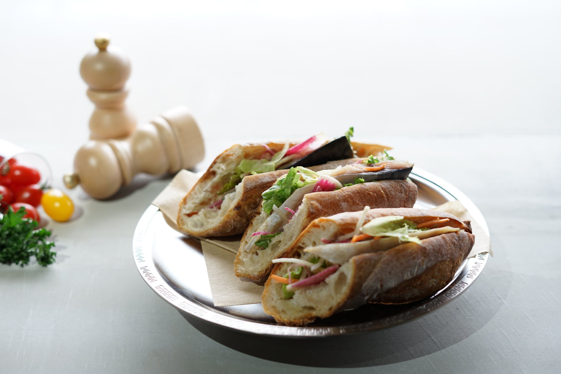 1日目2日目の昼食では地元の干物を使ったサバサンド、熱海にある洋食屋さんのサンドイッチなど、作業の合間に食べられるかたちで提供します。2日目の朝食には併設の薬膳喫茶メニューから中華粥をお召し上がりいただきます。