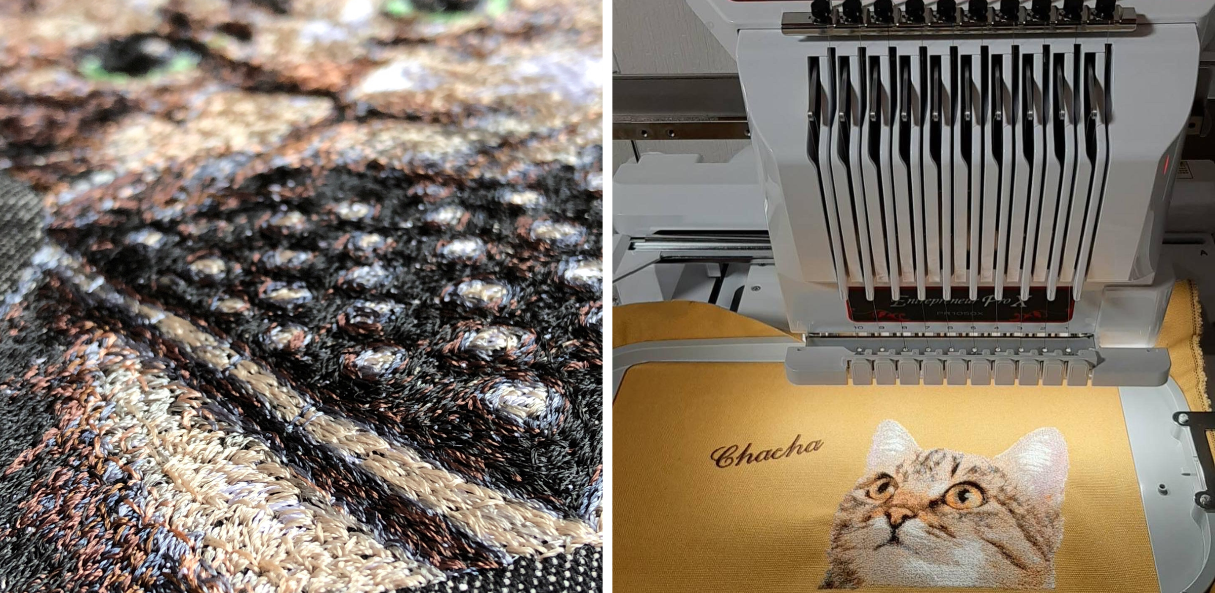 写真から刺繍データを作り、ミシンで刺繍する「フォト刺繍」