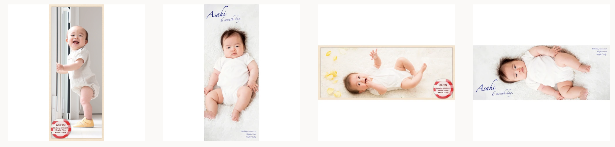 お子さまが誕生された時、七五三、はじめて立った時など、メモリアルな瞬間をいつでも形にしてください。もちろん、祖父母さまやご親戚の皆さまへのプレゼントとしても最適です!