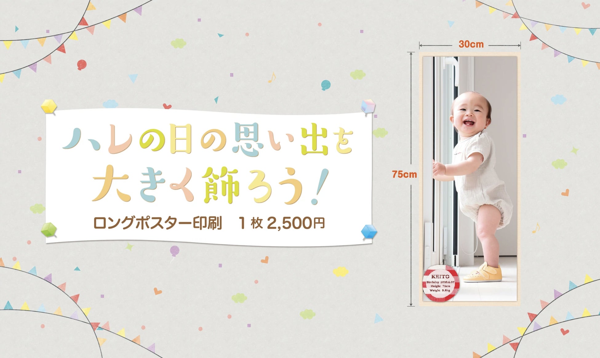 皆さまが日頃から撮り溜めている記念に残したい写真を形にして差し上げたい、そんな想いからこのネットショップを開設いたしました。お子さまの笑顔や忘れることのない出来ごとなど、ぜひ大型のポスターにして部屋を彩ってください。