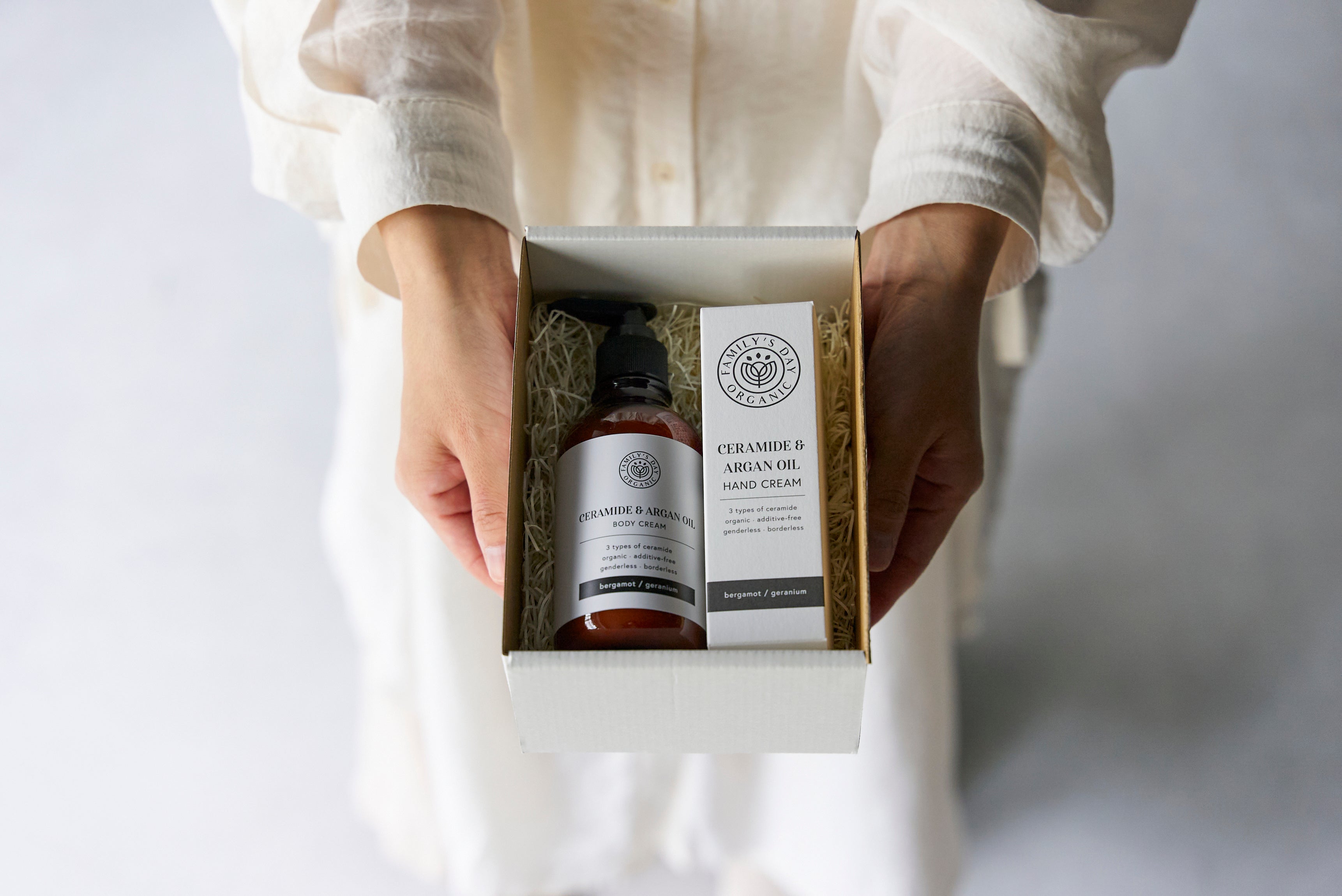 自然由来の成分に頼る、6つの無添加(*1)。3種のヒト型セラミド(*2)とオーガニックアルガンオイル(*3)を配合したナチュラルでありながら、贅沢なボディケアクリームシリーズで乾燥から家族のお肌を守ます。