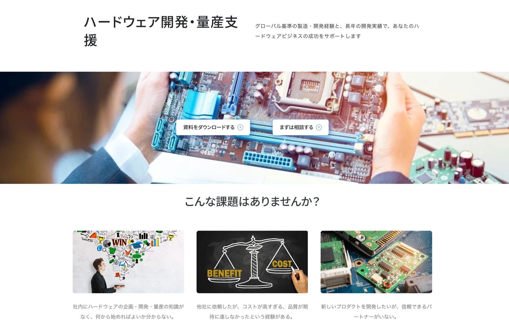 世界各国のODMパートナーとの強固なネットワークと、業界で培った長年の開発実績を活かし、製品コンセプトの具現化から試作品製作、量産設計、品質管理まで、トータルなソリューションを提供します。大手エンタープライズ企業から中小企業まで、幅広い規模・業種のハードウェアビジネス成功を支援します。